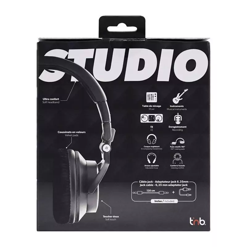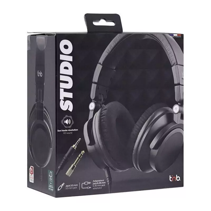 Casque filaire monitoring - T'nb - Studio - Jack 3,5mm + 6,35mm - Arceau réglable - Pliable - Noir
