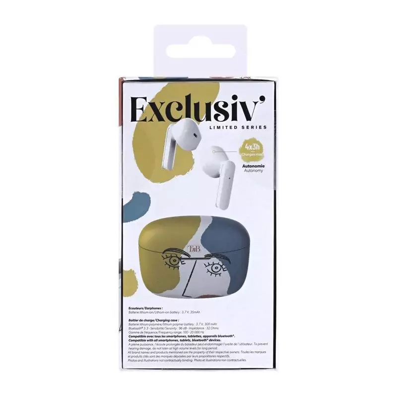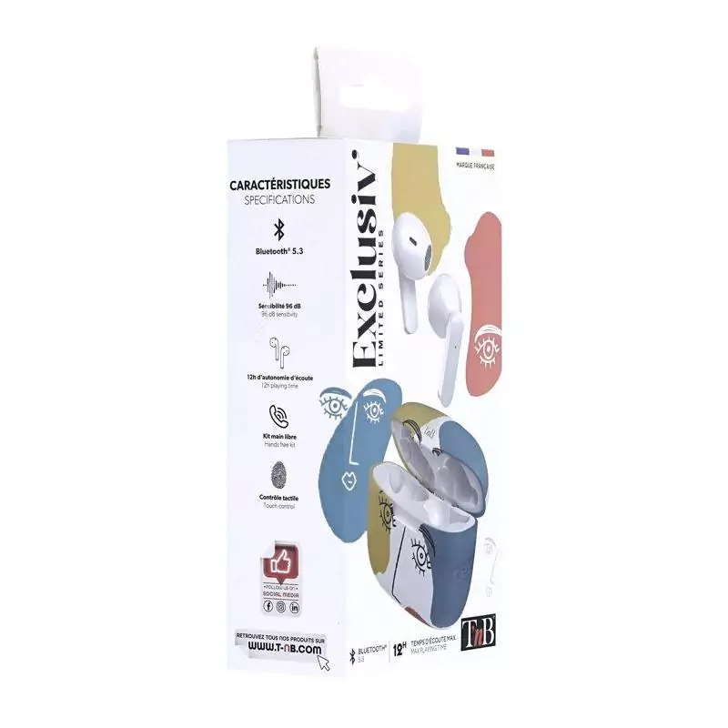 Ecouteurs sans fil - T'nb - Exclusiv' - ART 3 - Boîtier de charge inclus - Bluetooth - Autonomie 12h - Contrôle tactile - Blan