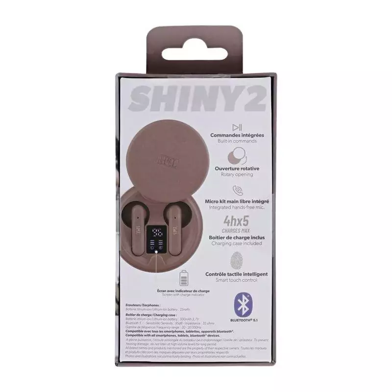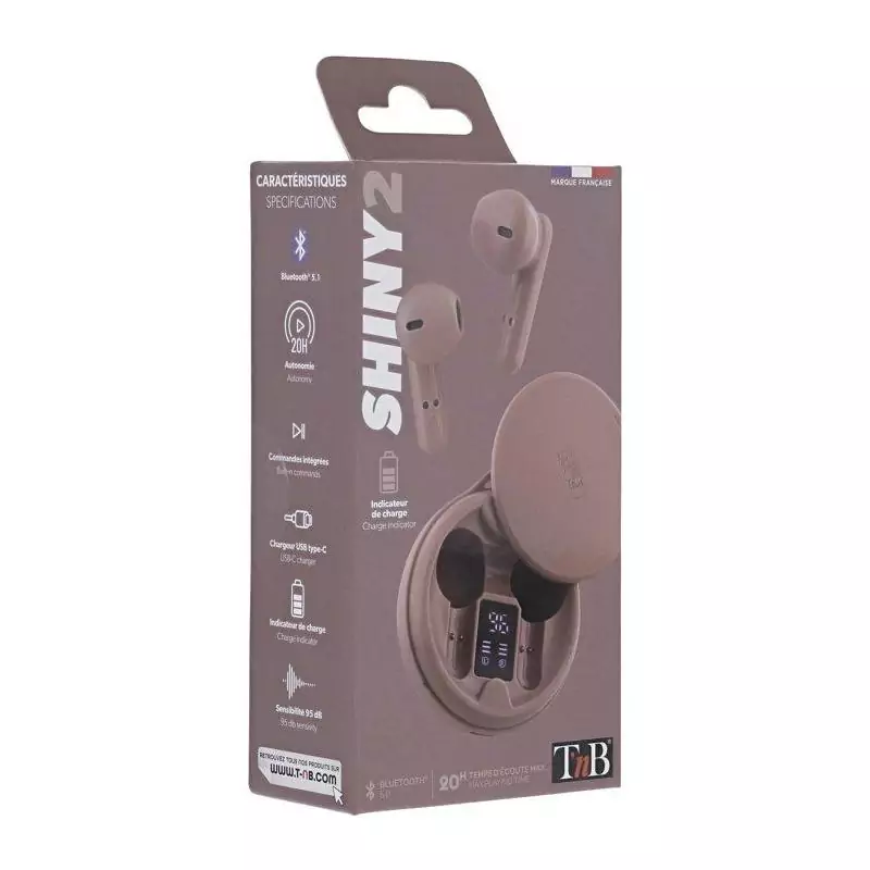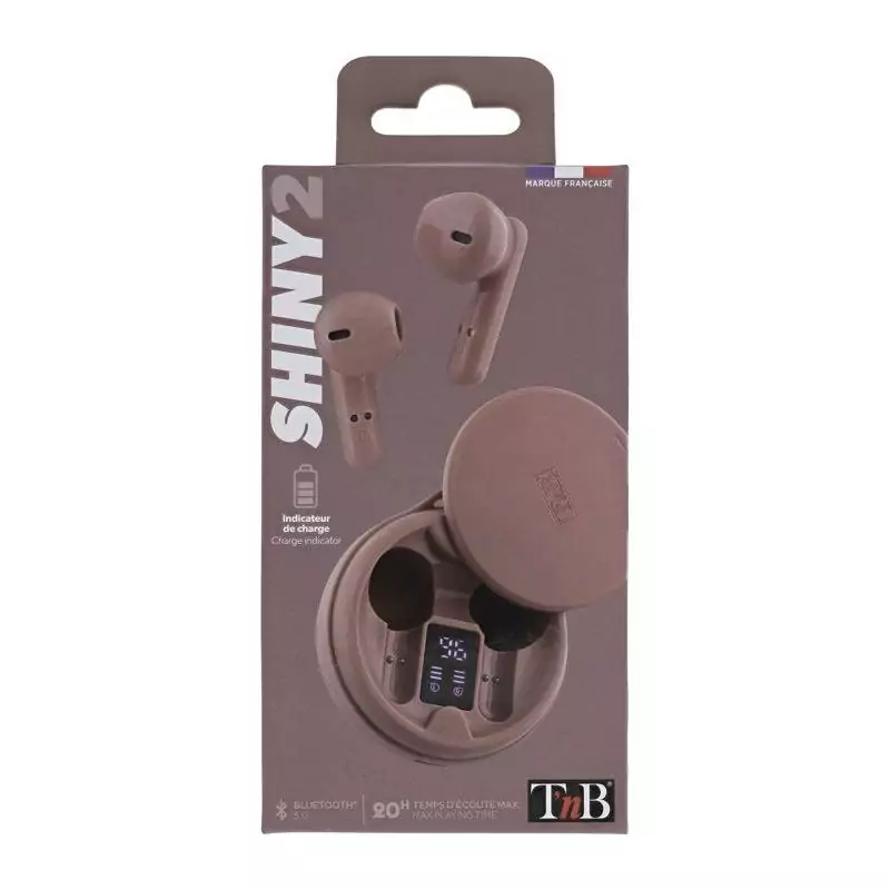 Ecouteurs sans fil TWS - T'nb - Shiny 2 - Boîtier de charge inclus - Bluetooth - Autonomie 20h - Contrôle tactile - Rose