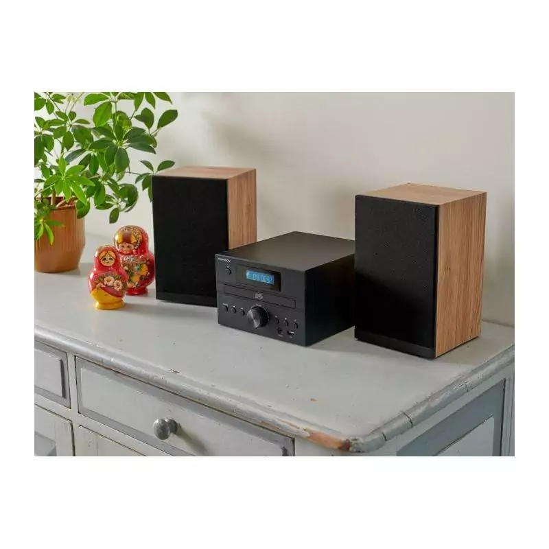 Cette Micro Chaîne est équipée de la fonction DAB, vous offrant une qualité sonore numérique supérieure pour une expérience d'écoute immersive. Le design élégant en bois et noir s'intègrera parfaitement dans n'importe quel décor, ajoutant une touche de sophistication à votre espace.