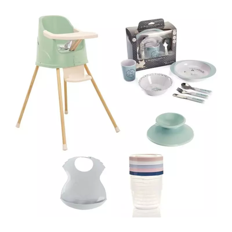 La chaise haute est l'élément central de ce pack. Conçue pour assurer la sécurité et le confort de votre enfant pendant les repas, elle est également facile à nettoyer pour un entretien optimal. Avec des dimensions de 75 cm de longueur, 40 cm de largeur et 40 cm de hauteur, elle s'intègre parfaitement dans n'importe quelle cuisine ou salle à manger.
