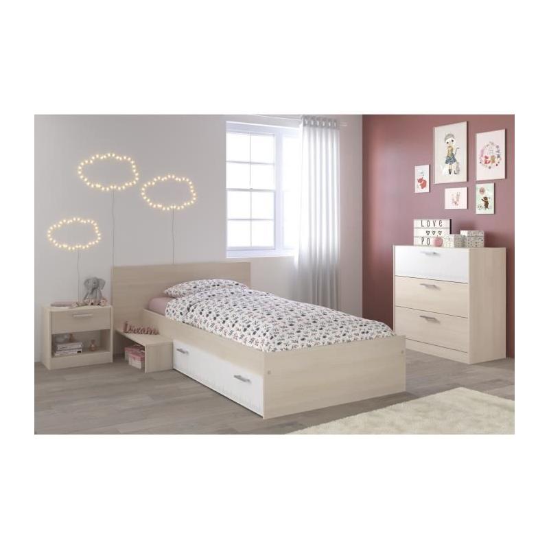 PARISOT Chambre Enfant Complete style contemporain décor acacia clair et blanc - l 90 x L 190 cm - CHARLEMAGNE