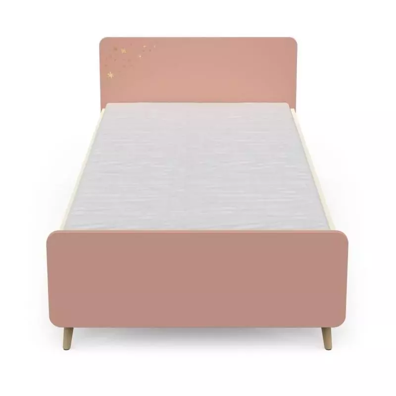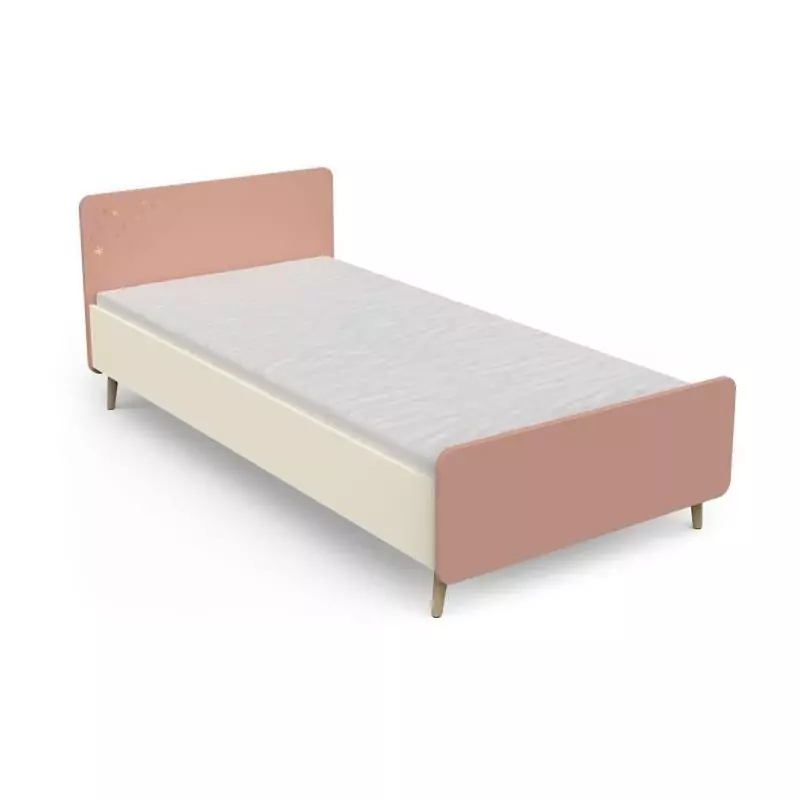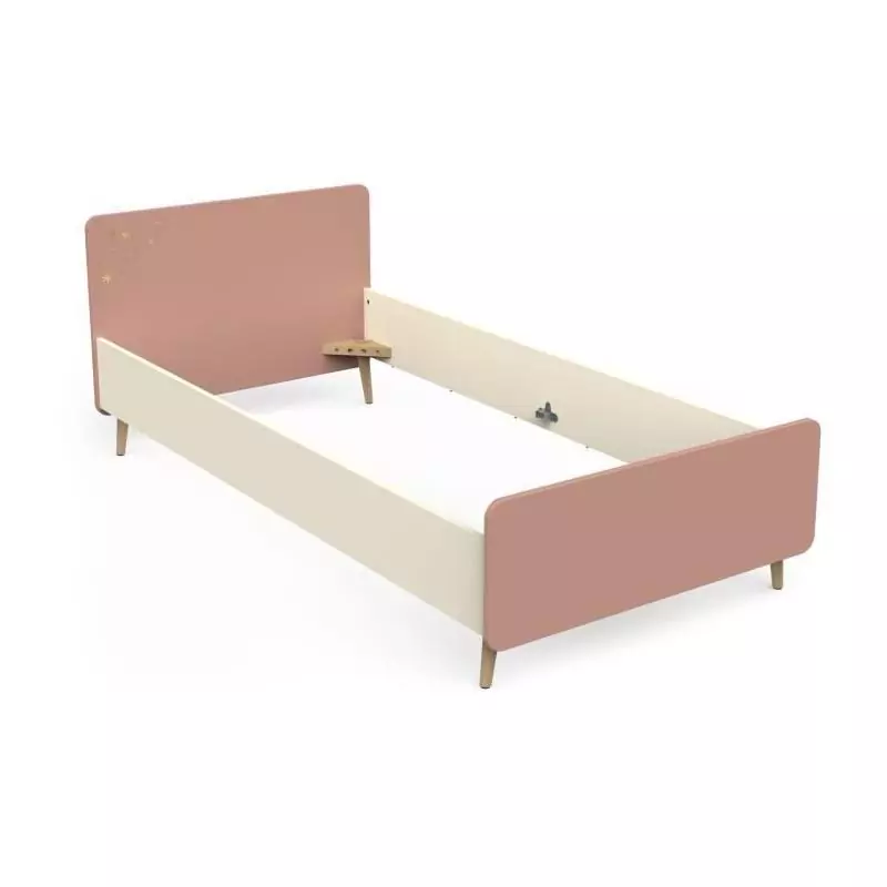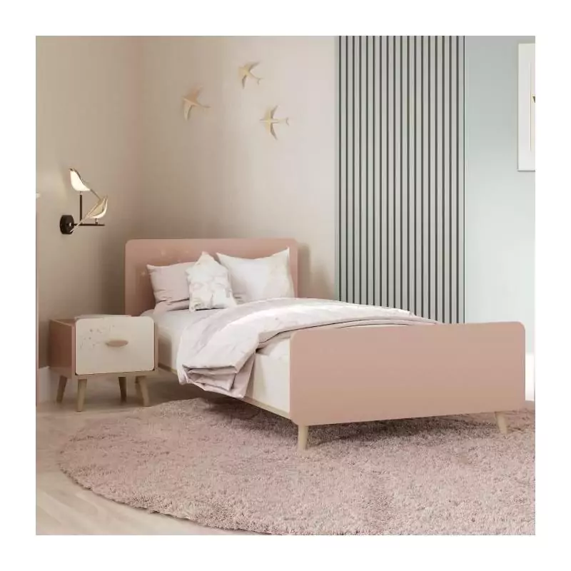 Ensemble Lit et table de chevet - SUZIE - 90 x 190 cm - Chene / Abricot - DEMEYERE