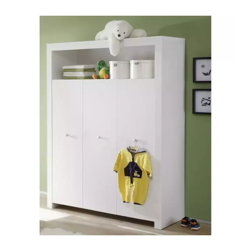 Chambre bébé Trio : Lit 70 x 140 cm + Commode a langer + Armoire OLIVIA - Blanc - TREND TEAM