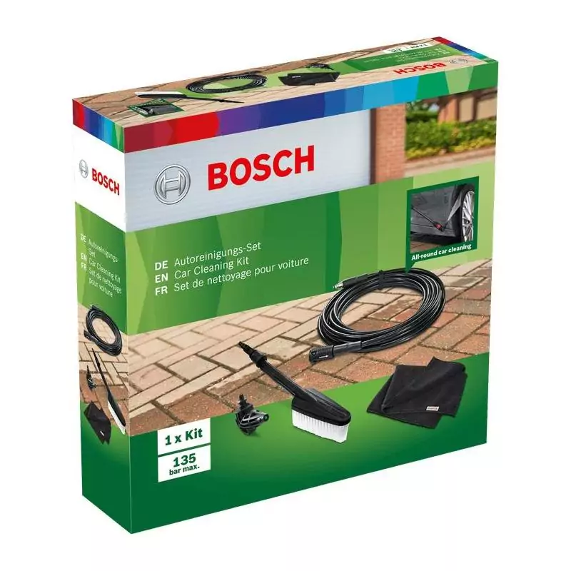 Kit de nettoyage voiture pour nettoyeurs haute pression BOSCH - Brosse de lavage, Tuyau haute pression, Buse a 90°, Chiffon