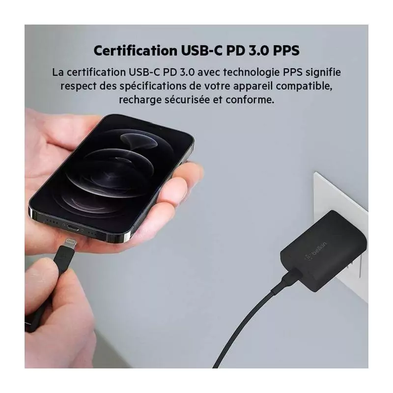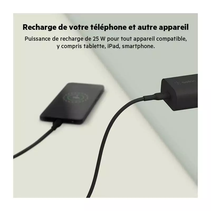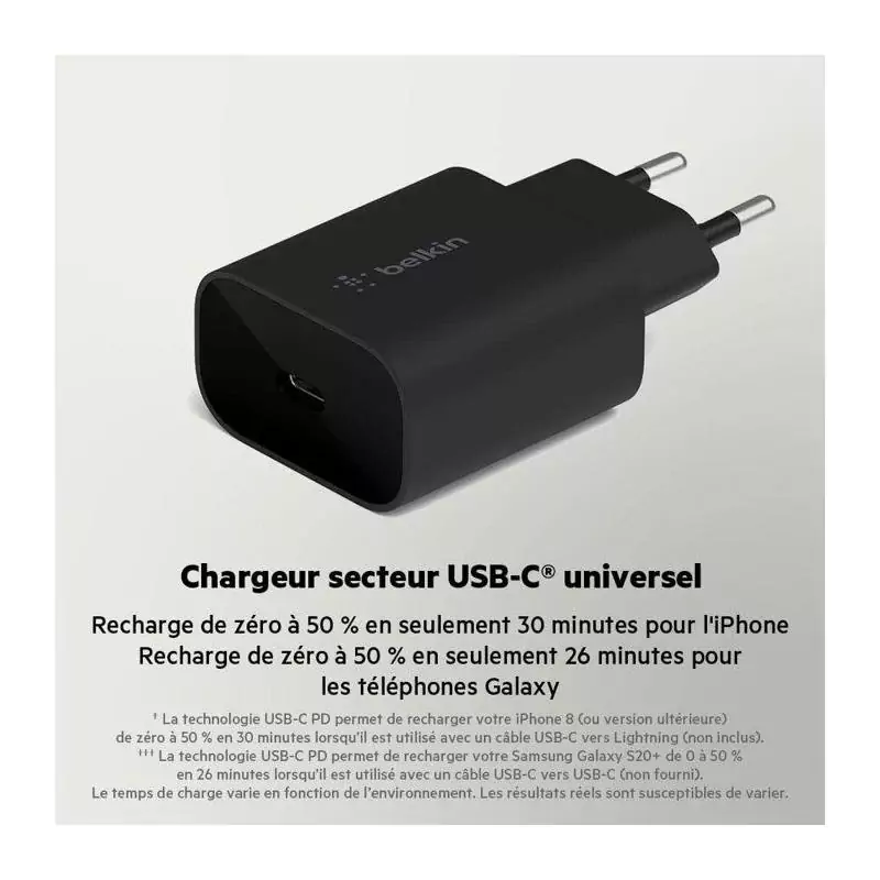 Chargeur secteur - BELKIN - USB-C - 25 W - PD PPS - Noir