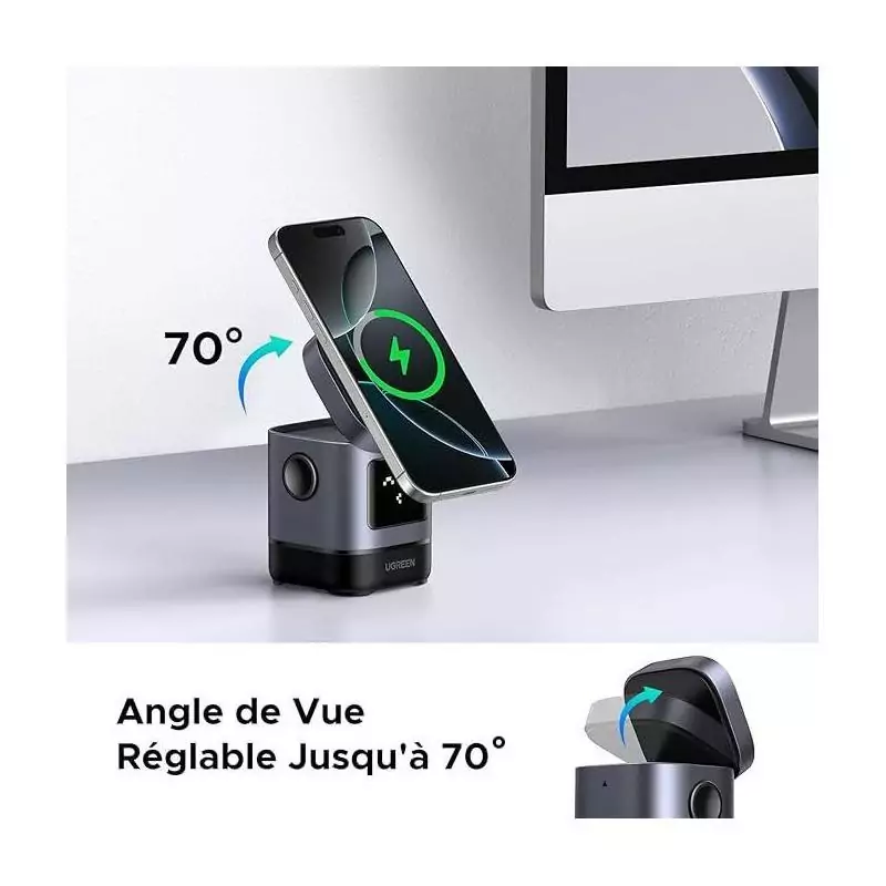 La Station de charge 2 en 1 de la marque UGREEN est l'accessoire idéal pour tous les propriétaires de smartphones. Ce chargeur téléphone innovant combine une base de chargement sans fil Qi2 avec un support de téléphone ajustable, offrant ainsi une solution pratique et élégante pour recharger votre appareil tout en le gardant à portée de main.