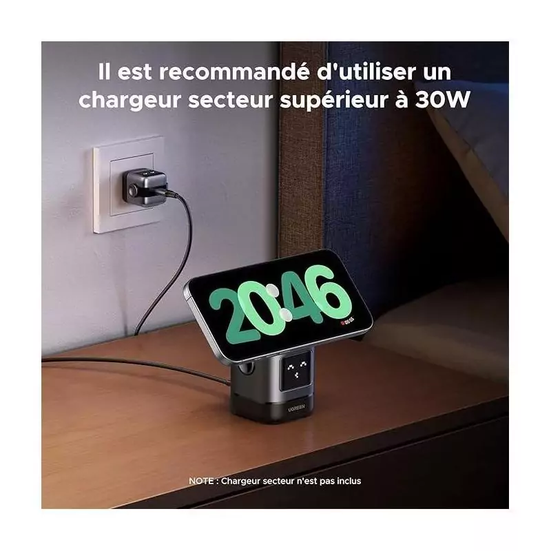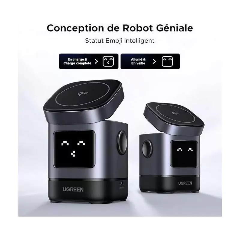 Station de charge 2 en 1 - UGREEN - Robot - Qi2 - Noir
