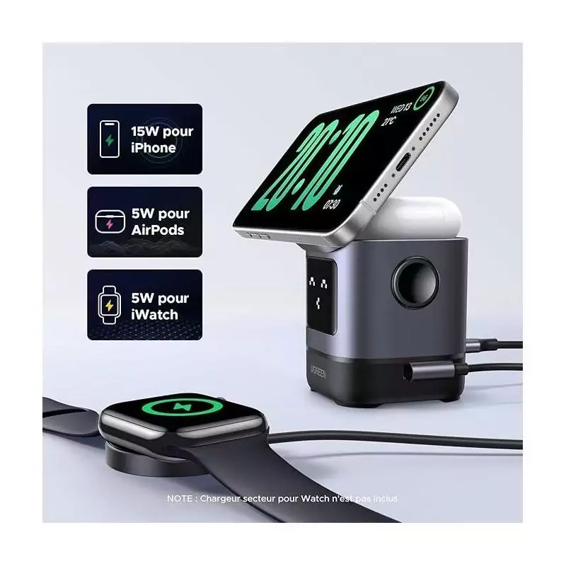 N'attendez plus pour simplifier votre quotidien et profiter d'une recharge pratique et rapide avec la Station de charge 2 en 1 UGREEN. Ne manquez pas cette occasion de garder votre téléphone toujours opérationnel !