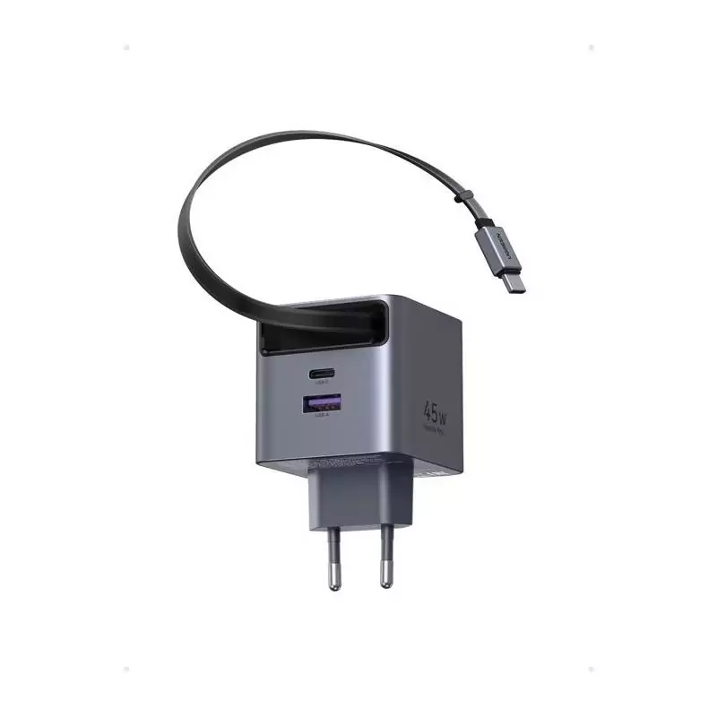 Profitez de rechargements rapides et pratiques avec le chargeur secteur UGREEN 65W. Ne manquez plus jamais de batterie grâce à sa double connectivité USB-A et USB-C. Commandez le vôtre maintenant!