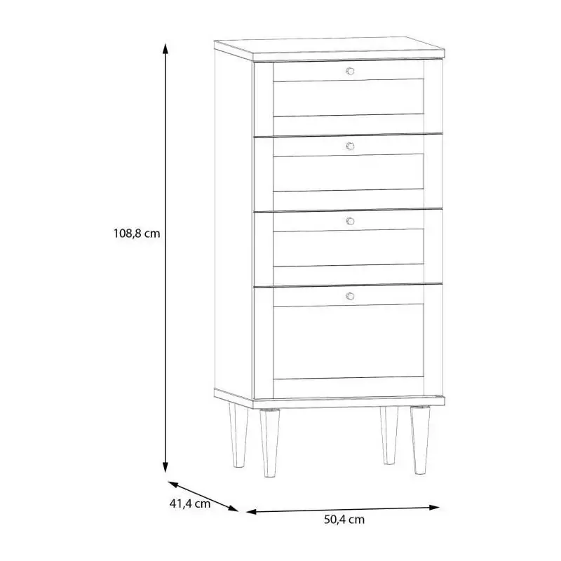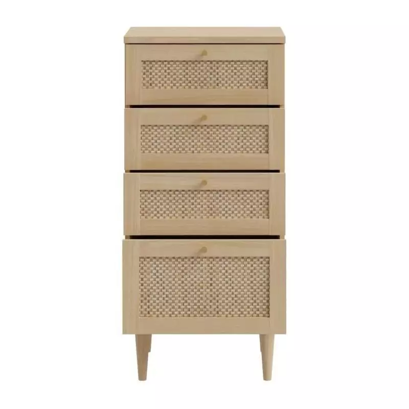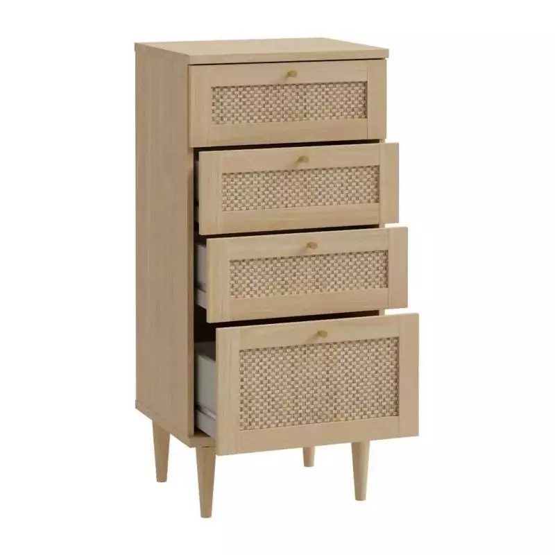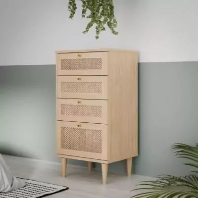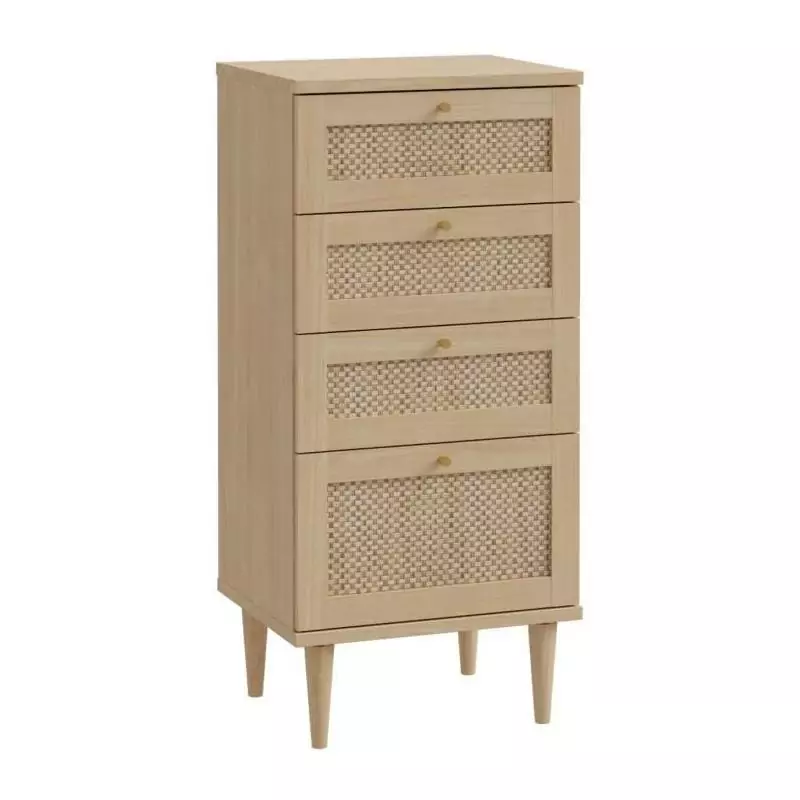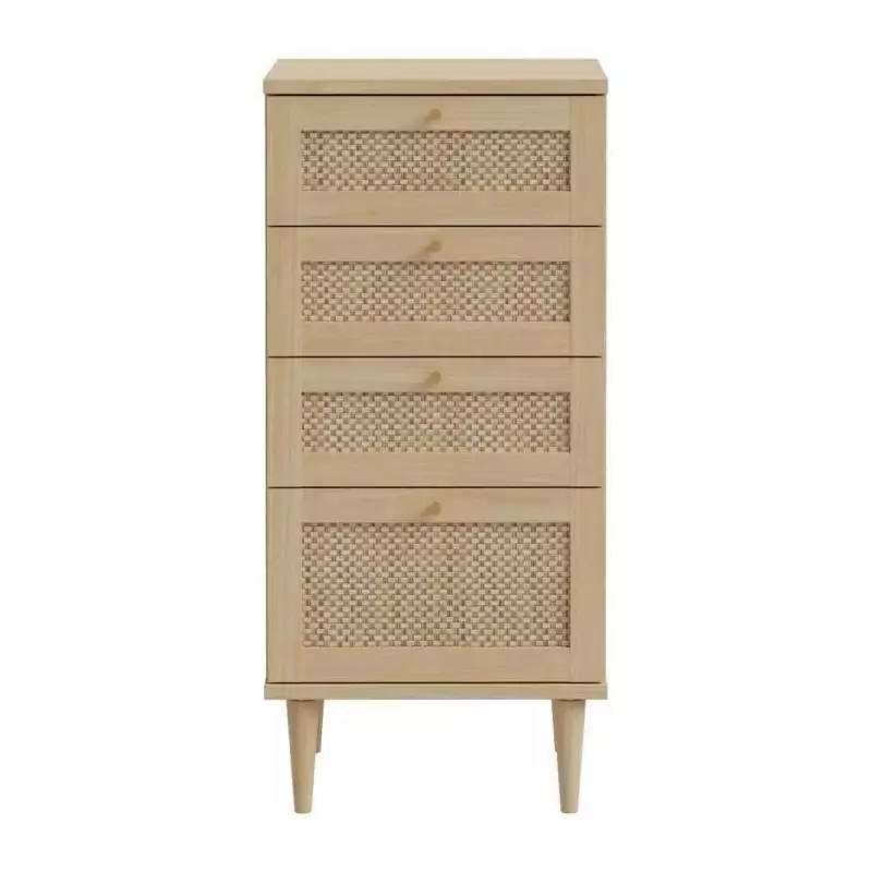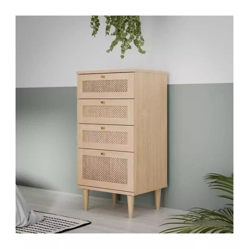 La Commode CALASETTEA est un meuble pratique et élégant qui apportera une touche de charme à votre intérieur. Avec ses 4 tiroirs, vous bénéficierez d'un espace de rangement optimal pour organiser vos vêtements, accessoires ou autres objets du quotidien.