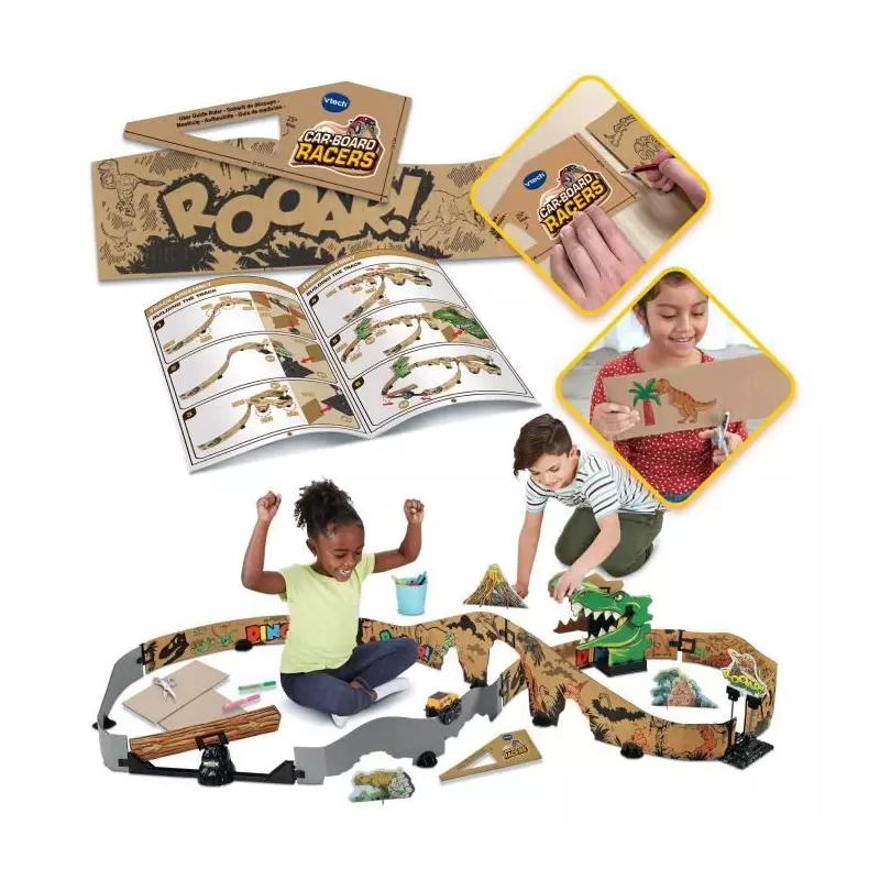 Circuit de course en carton - VTECH - CAR-BOARD RACERS - DINO ADVENTURE - 5 ans + - Marron