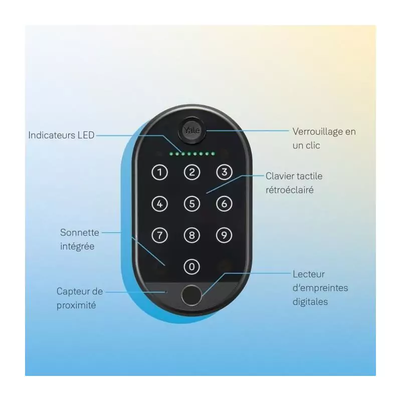 Clavier connecté - YALE - Biométrique - Jusqu'a 10 utilisateurs sur le clavier
