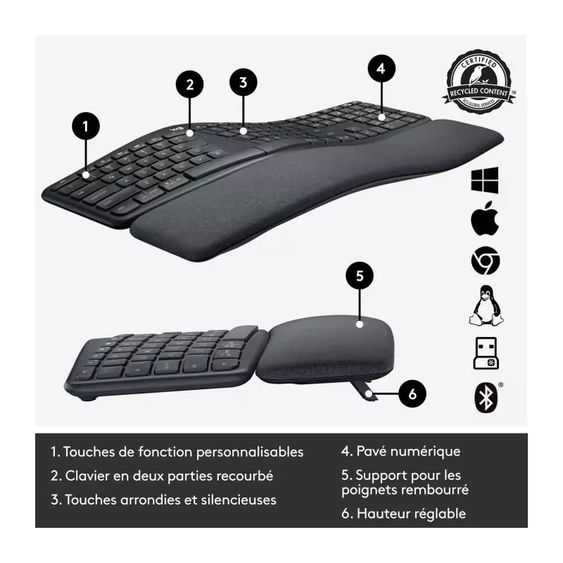 Offrez-vous le meilleur de la technologie et du confort avec le clavier ergonomique sans fil Logitech ERGO K860 AZERTY Noir. Parfait pour les professionnels, les gamers ou les utilisateurs occasionnels, il saura répondre à tous vos besoins en matière de saisie et de productivité.