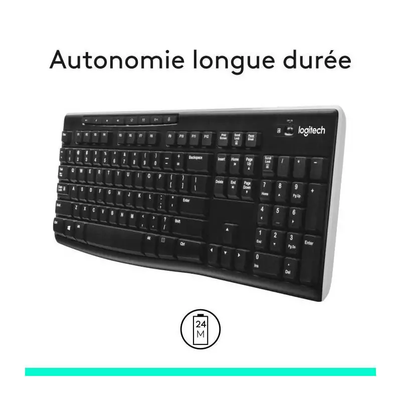 Clavier - Sans fil - Logitech - K270 - AZERTY - Noir