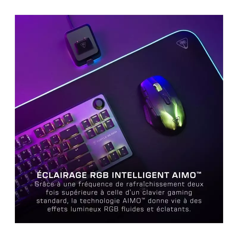 Éclairage RGB intelligent AIMO™ Grâce à une fréquence de rafraîchissement deux fois supérieure à celle d'un clavier gaming standard, la technologie AIMO™ donne vie à des effets lumineux RGB fluides et éclatants et peut être synchronisée avec d'autres produits compatibles qui utilisent AIMO™.