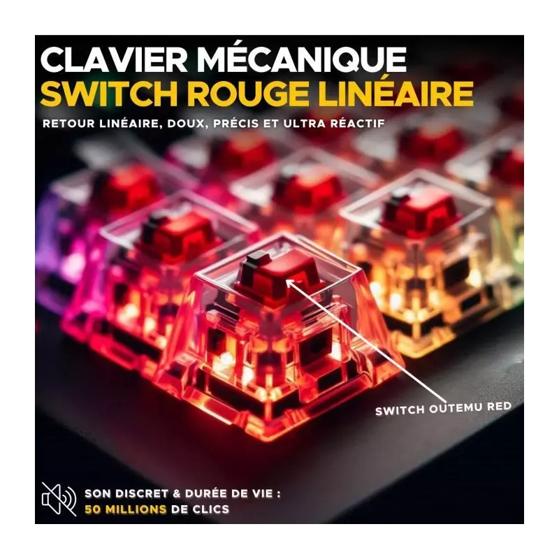 Découvrez le Clavier Gamer - The G-Lab - KEYZ TITAN - Mécanique (Switch Rouge) - Filaire - RGB - Noir