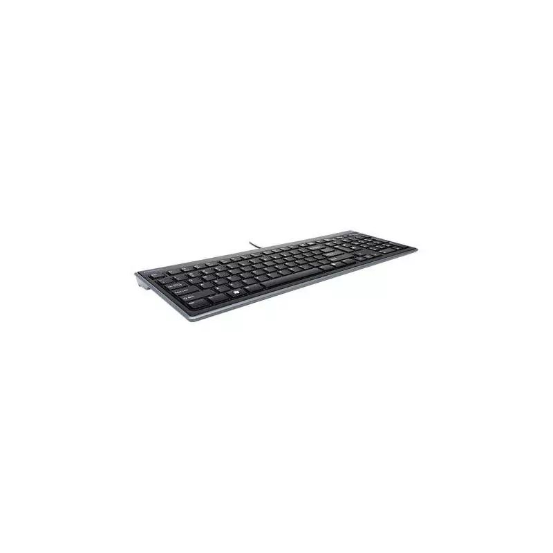 Kensington Clavier ultra plat Advance Fit™. Facteur de forme du clavier: Taille réelle (100 %). Style de clavier: Droit. Technologie de connectivité: Avec fil, Interface de l'appareil: USB, Disposition des touches du clavier: AZERTY. Longueur de câble: 1,9 m. Utilisation recommandée: Bureau. Couleur du produit: Noir