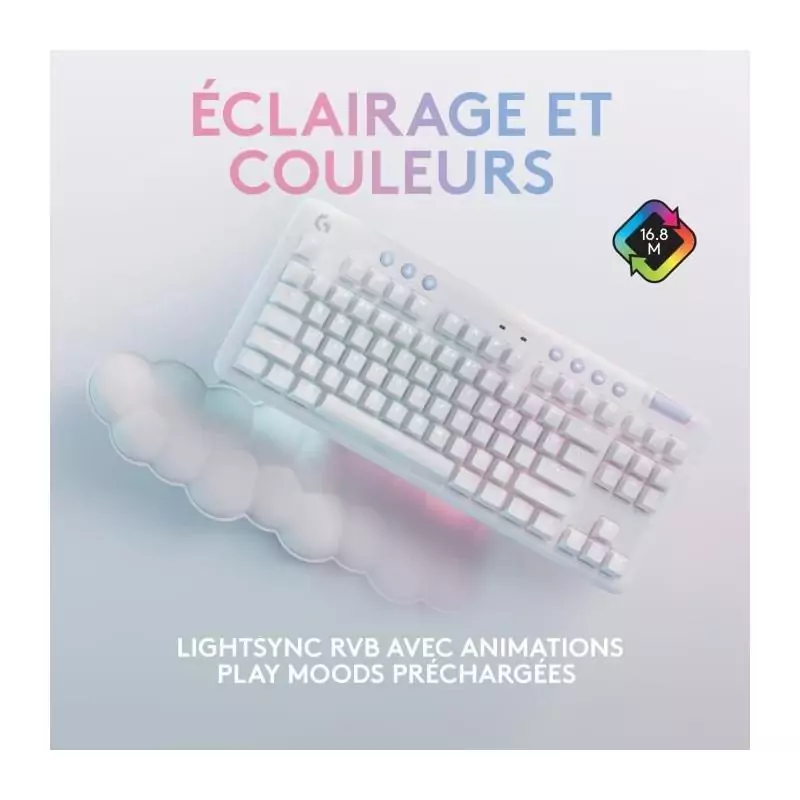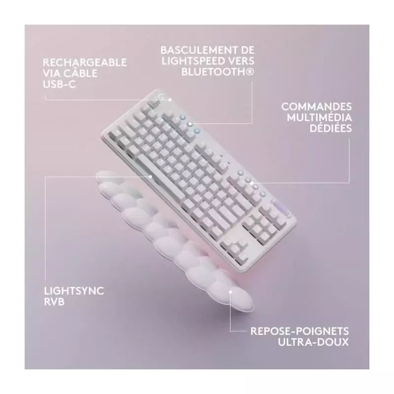 Avec son design élégant en coloris White Mist, le Clavier Gamer Sans fil Logitech G715 apporte une touche d'élégance à votre setup gaming. Sa connectivité sans fil vous offre une liberté de mouvement totale, vous permettant de jouer sans contraintes.