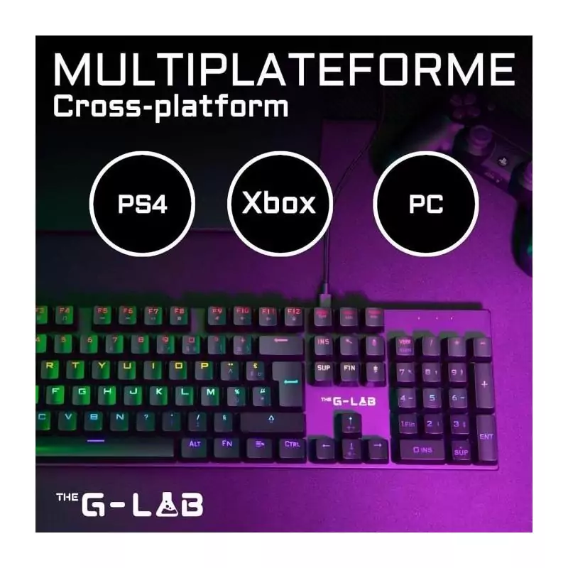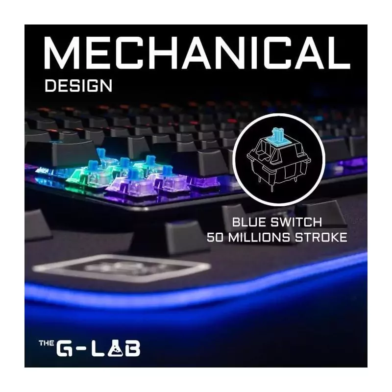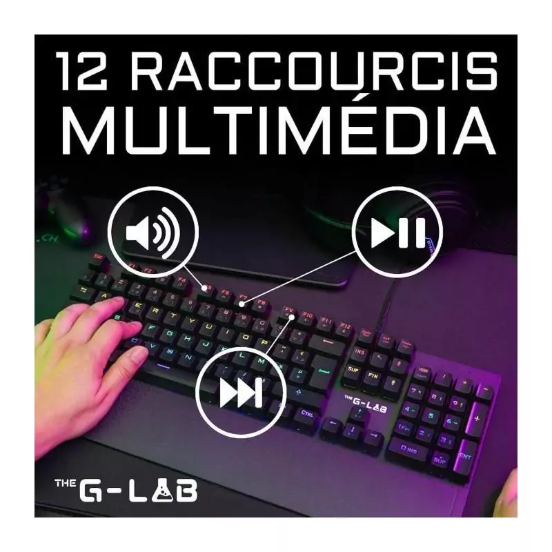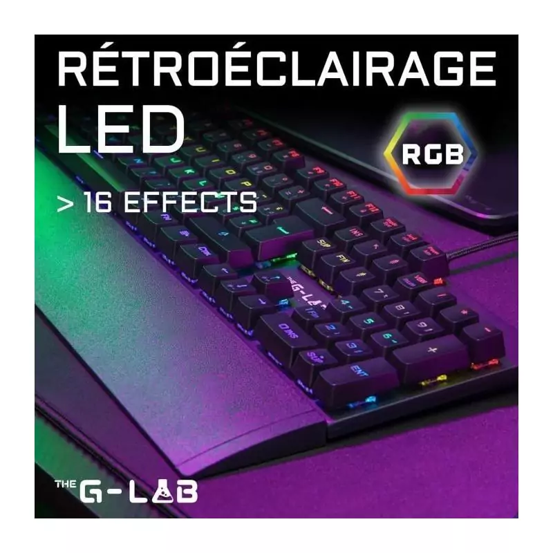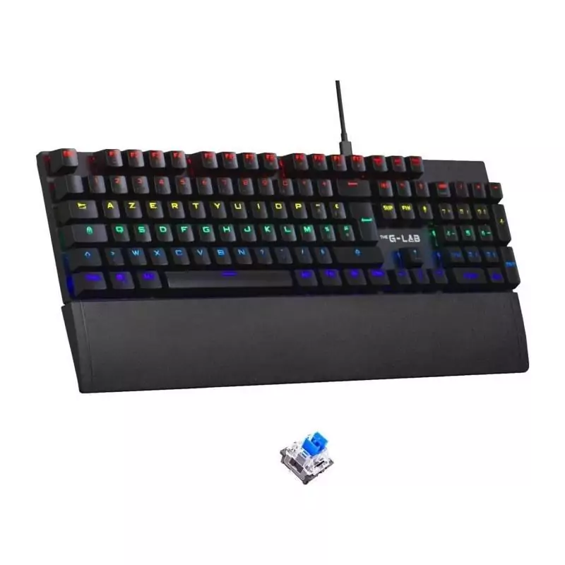 Clavier Gamer - The G-Lab - KEYZ CARBON E - Mécanique (Switch Bleu) - Rainbow - Low Profile - Repose Poignet - Filaire - Noir