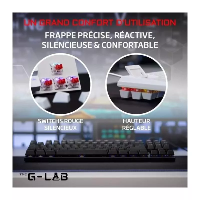 Clavier Gamer - The G-Lab - KEYZ MERCURY TKL - Mécanique (Switch Rouge) - Rainbow - Filaire - Azerty - Noir