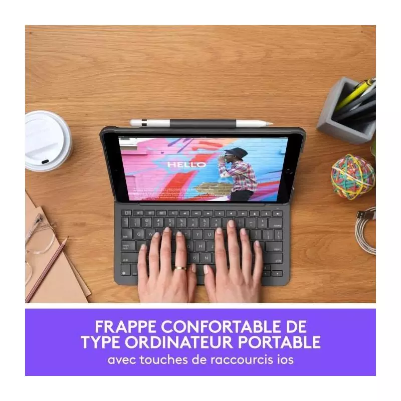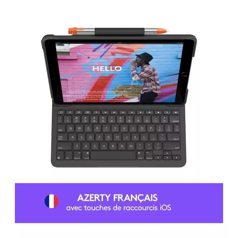 Etui clavier - Logitech - Slim Folio - AZERTY - Pour iPad 10.2 (7e, 8e, 9e génération) - Gris