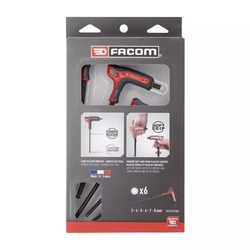Jeu de 6 clés - FACOM - 84TZSA.PB - a Poignées - En T - 6 pans