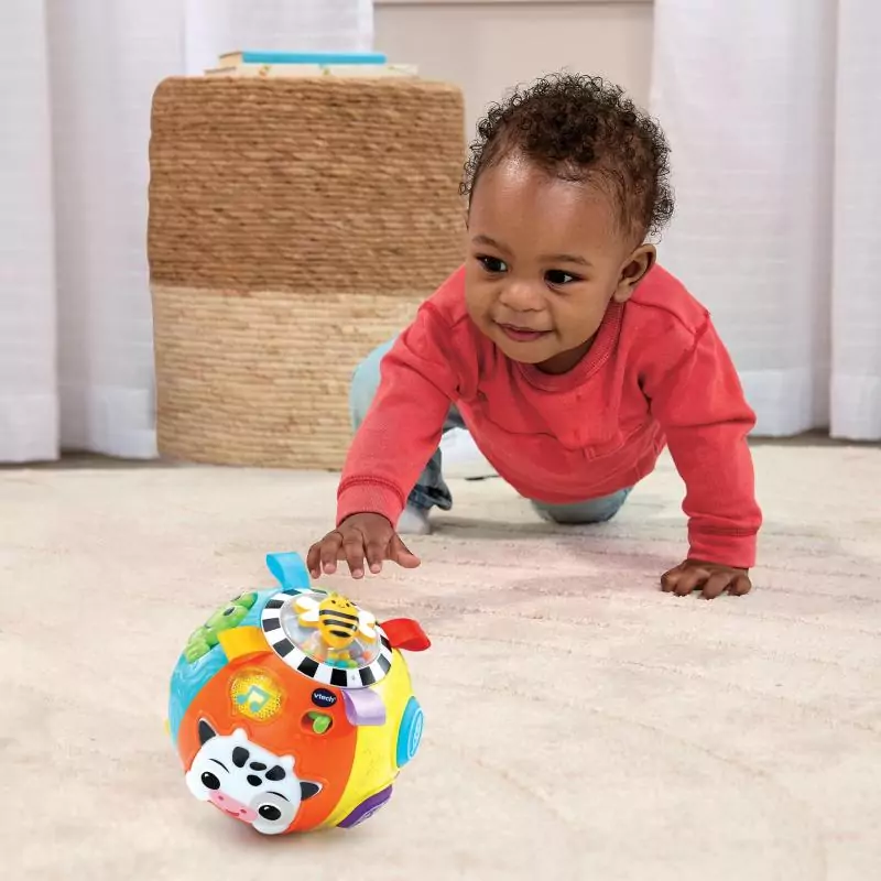 Une balle colorée pour éveiller les sens de Bébé grâce à ses nombreuses manipulations et textures. 4 boutons interactifs et lumineux pour faire le plein de découvertes en s'amusant. Détecteur de mouvement pour déclencher des effets sonores. 3 chansons et 15 mélodies.