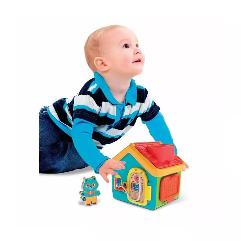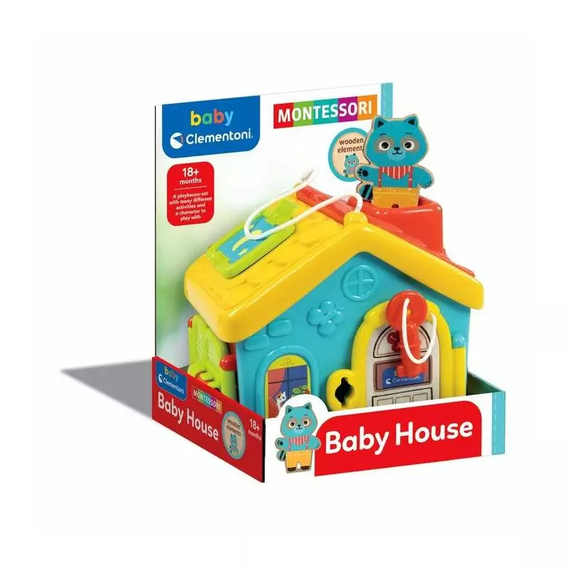Une maison remplie de différentes activités et d'un personnage avec lequel les enfants peuvent jouer. Le jouet, inspiré de la méthode Montessori, permet aux enfants d'améliorer leur motricité fine, tout en leur apprenant à réaliser des gestes utiles au quotidien. L'enfant peut s'exercer à ouvrir les portes avec les différents systèmes de fermeture, découvrant ainsi l'intérieur de la maison. Un jeu Montessori classique (Lock Box), revisité avec le design unique et amusant de Baby Clementoni.
