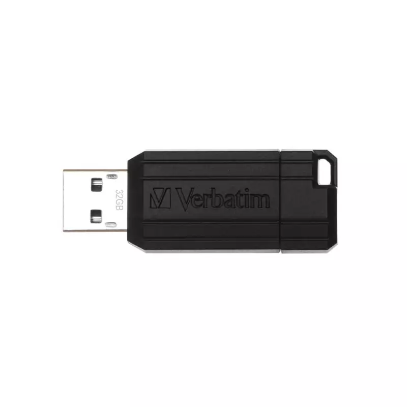 Verbatim Micro-clé USBPinStripe de 32 Go - noire. Capacité: 32 Go, Interface de l'appareil: USB Type-A, Version USB: 2.0, Vitesse de lecture: 10 Mo/s, Vitesse d'écriture: 4 Mo/s. Format: Slide. Protection par mot de passe. Poids: 8,6 g. Couleur du produit: Noir