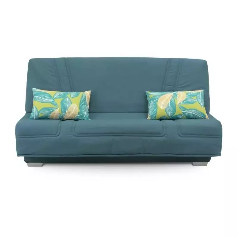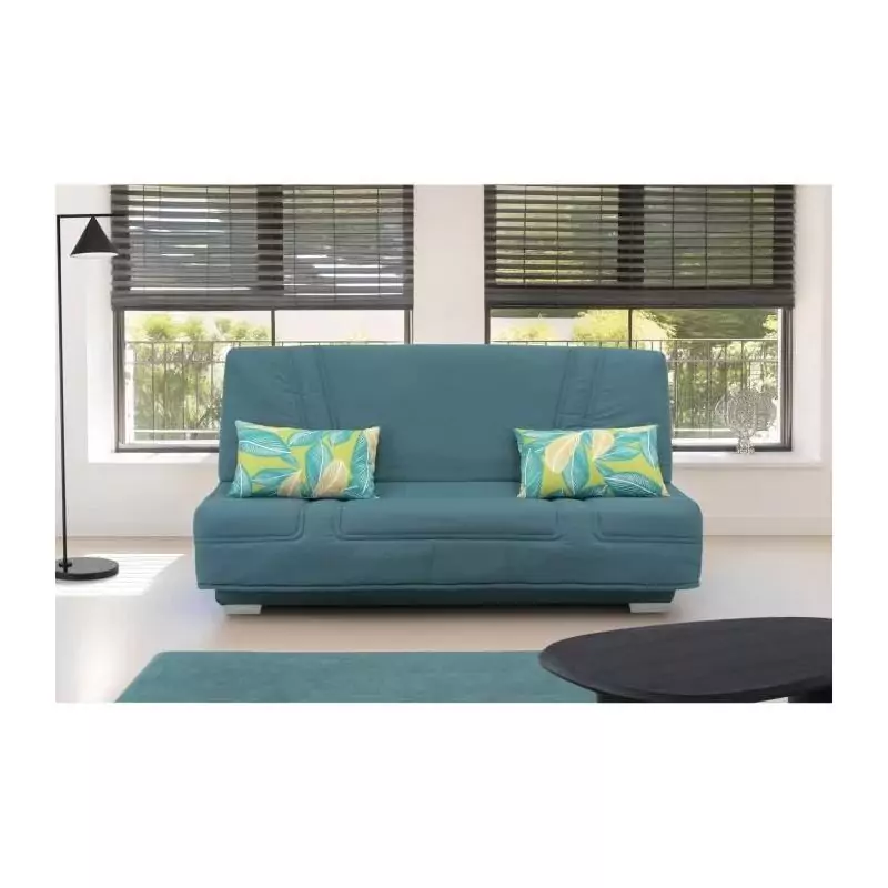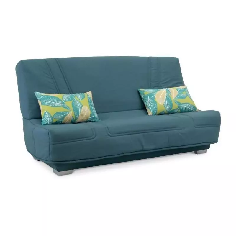 Le revêtement en tissu bleu apporte une touche de modernité et d'élégance à votre intérieur, s'intégrant parfaitement à divers styles de décoration. De plus, les coussins déco Jungle inclus ajoutent une note d'exotisme et de fraîcheur à l'ensemble.