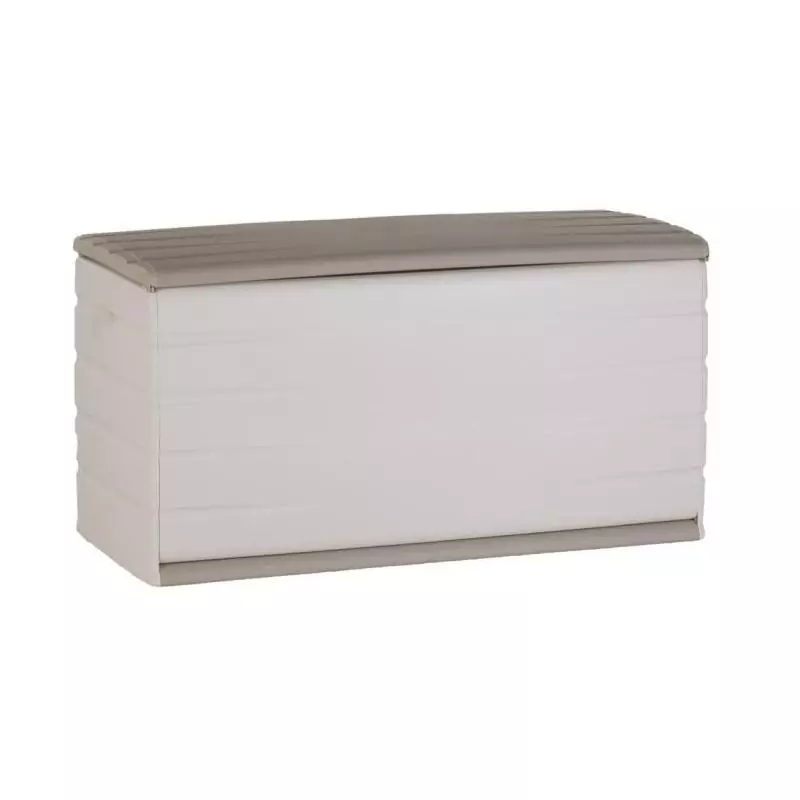 Ce coffre est à la fois fonctionnel et esthétique, avec une finition beige élégante qui s'harmonise facilement avec tout type de décor. Grâce à sa construction robuste en plastique durable, ce coffre est résistant aux intempéries et peut être utilisé en toute saison.