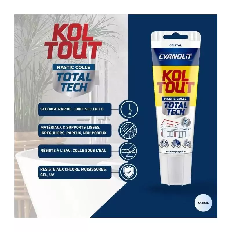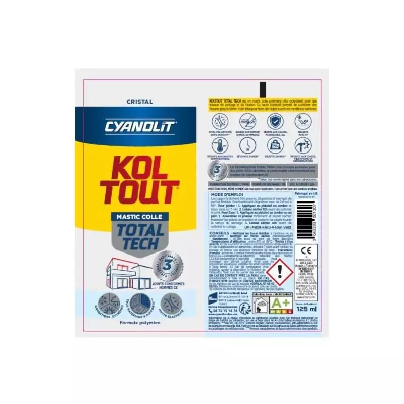 Colle de fixation et d'étanchéité - CYANOLIT - Total tech - Cristal - Tube 125 ml - Transparent - Polyvalente et flexible