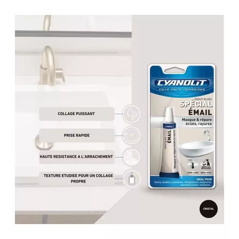 Enduit spécial email - CYANOLIT - 15 ml - Réparation et finition de surfaces émaillées