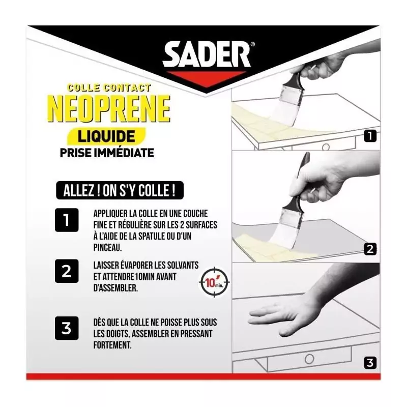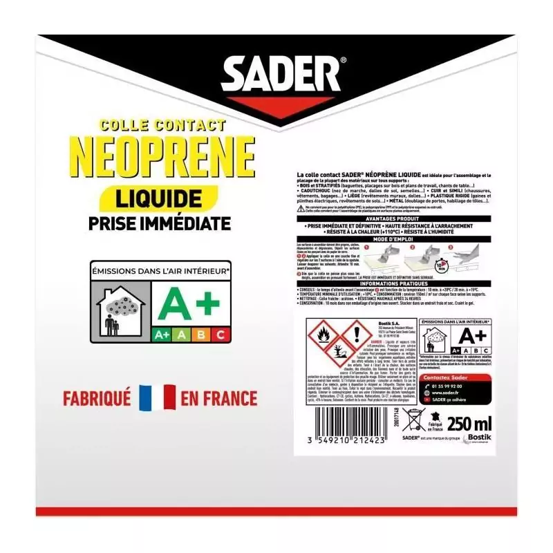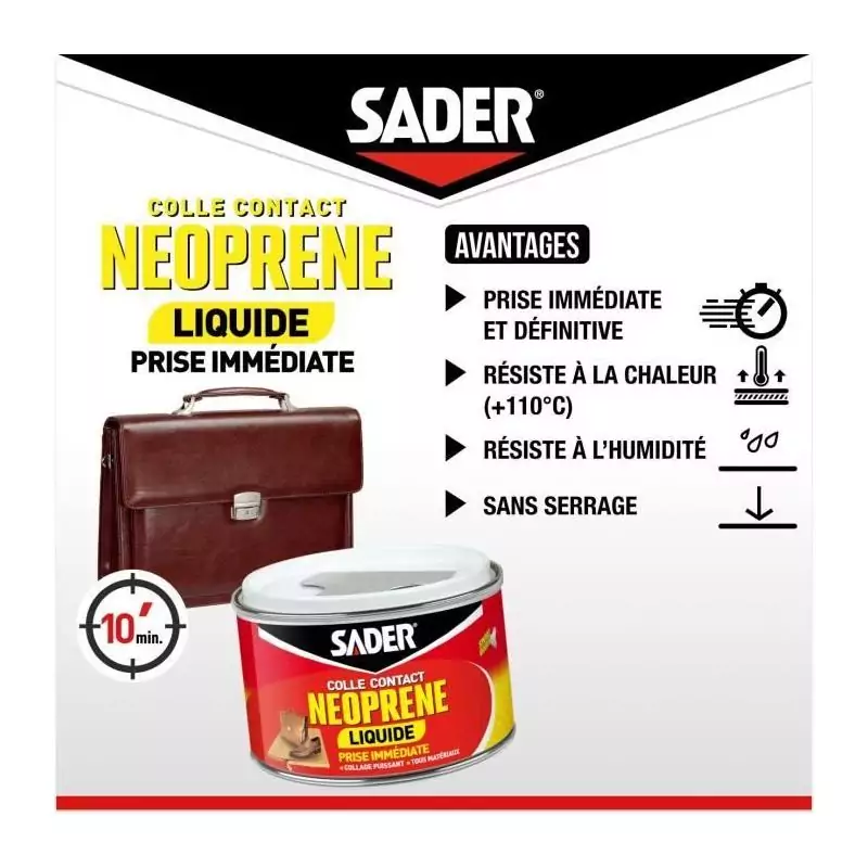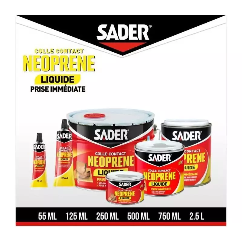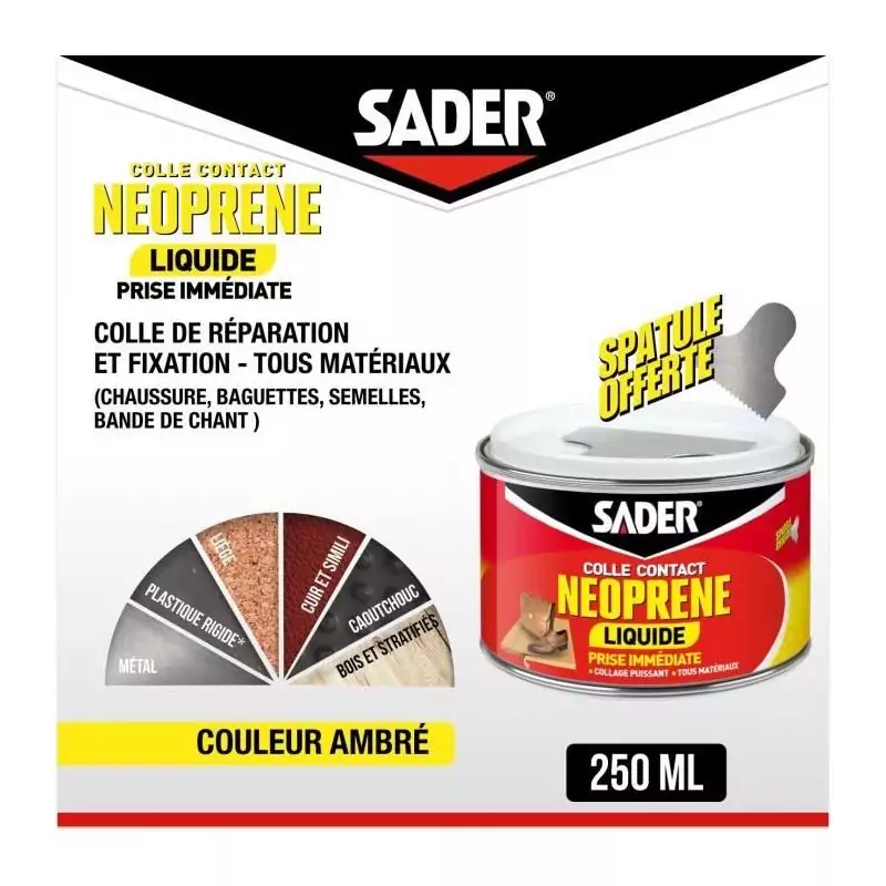 Colle contact néoprene liquide extra forte - SADER - Tous matériaux - Prise immédiate - Boîte 250 ml