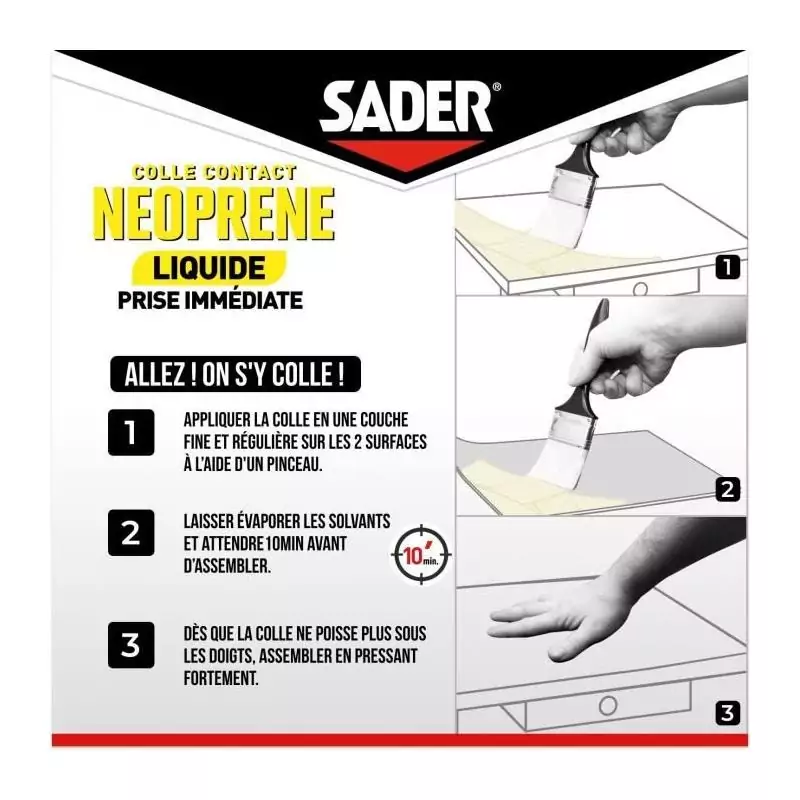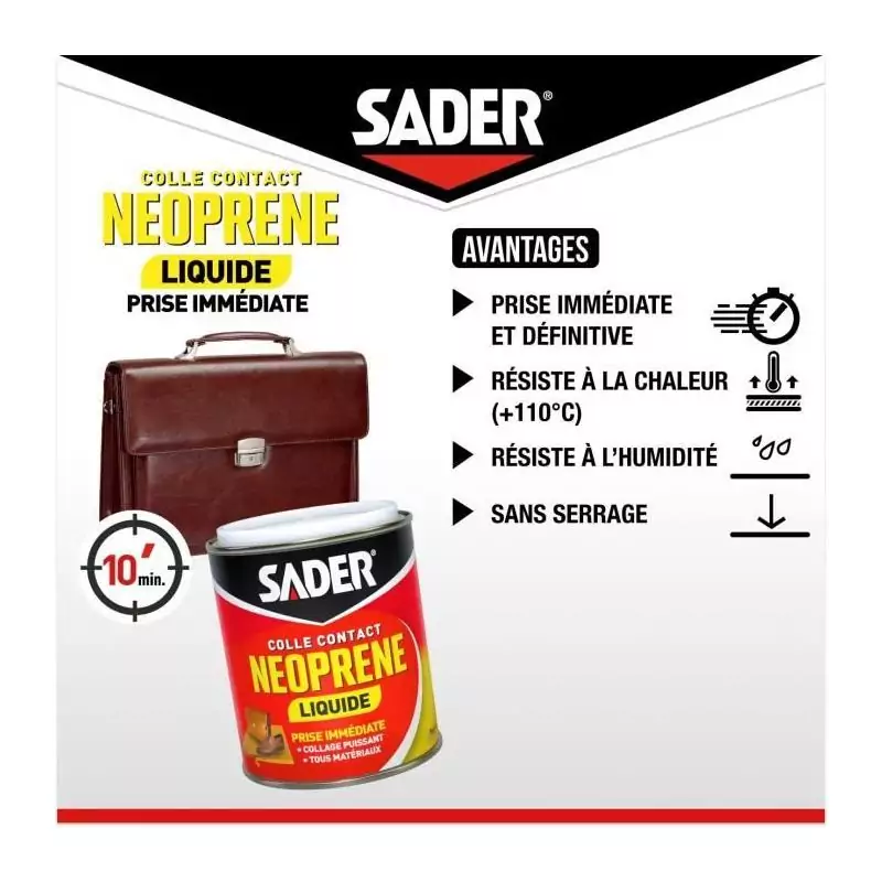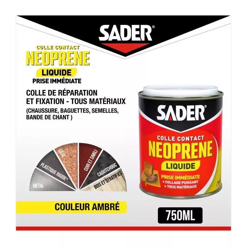Colle contact néoprene liquide extra forte - SADER - Tous matériaux - Prise immédiate - Boîte 750 ml