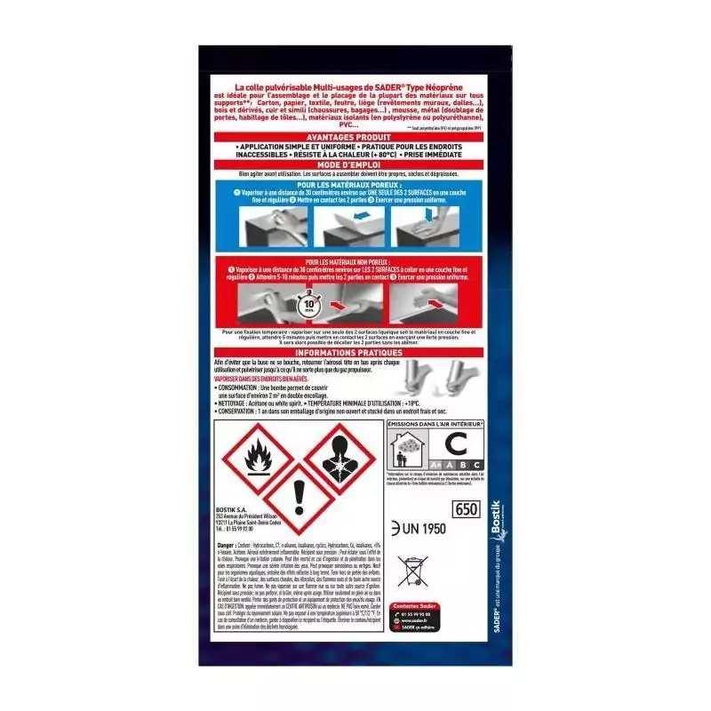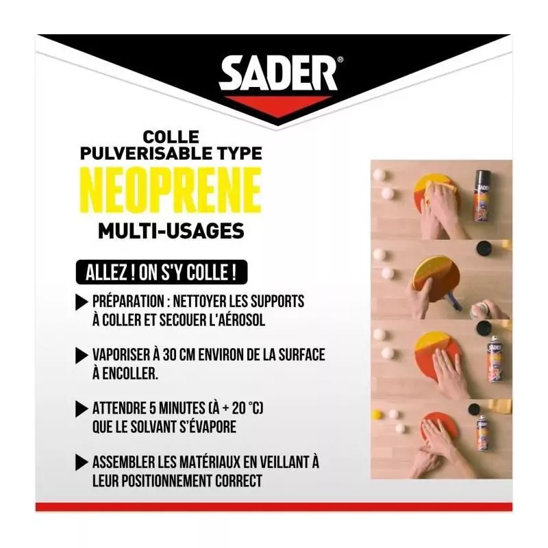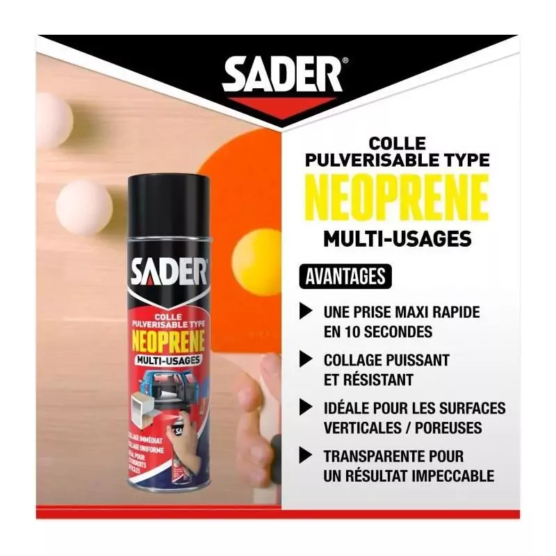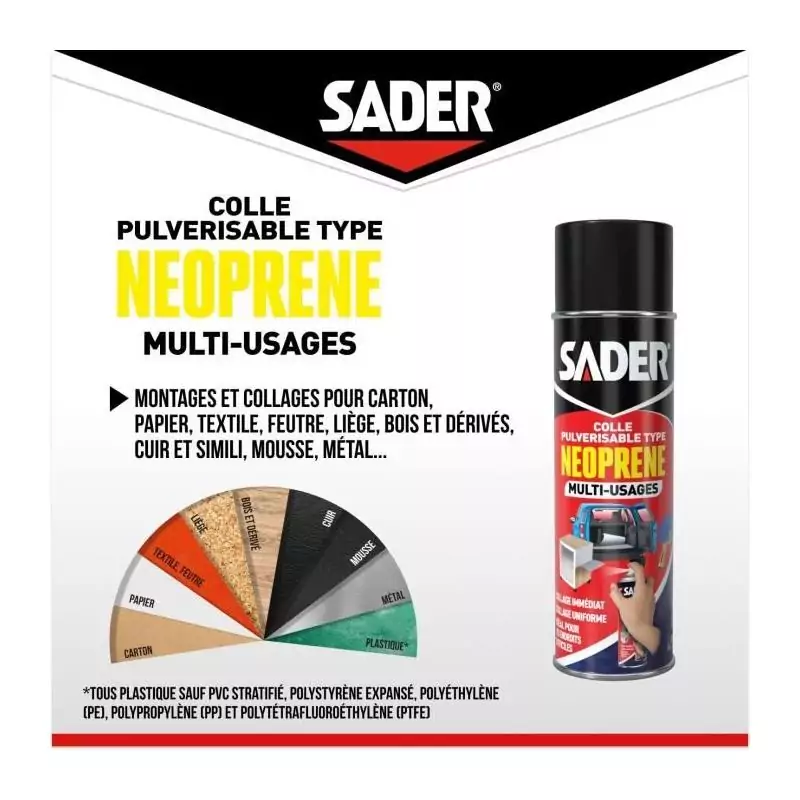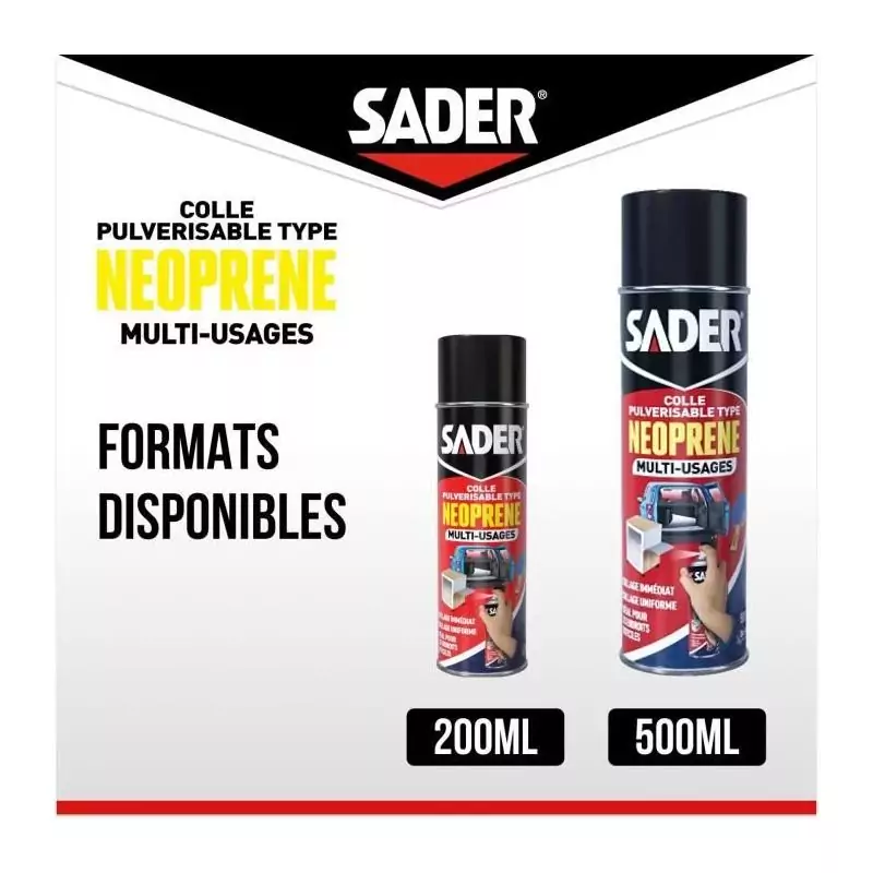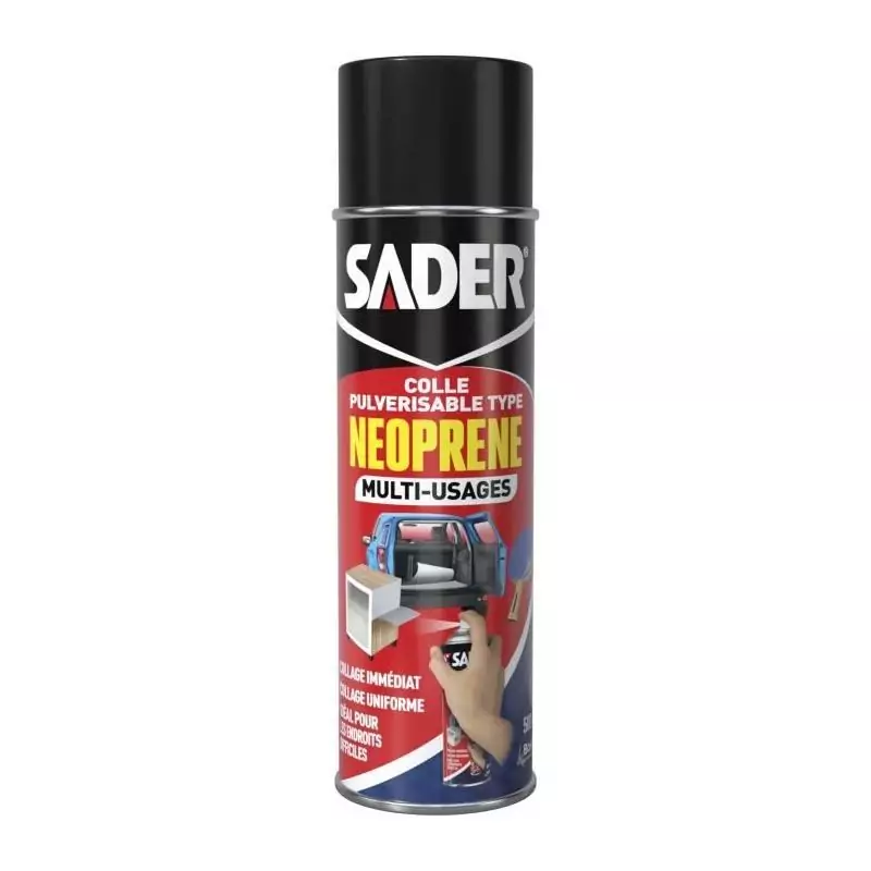 Colle aérosol néoprene multi-usages - SADER - Extra forte - Tous matériaux - Prise immédiate - Bombe 500 ml