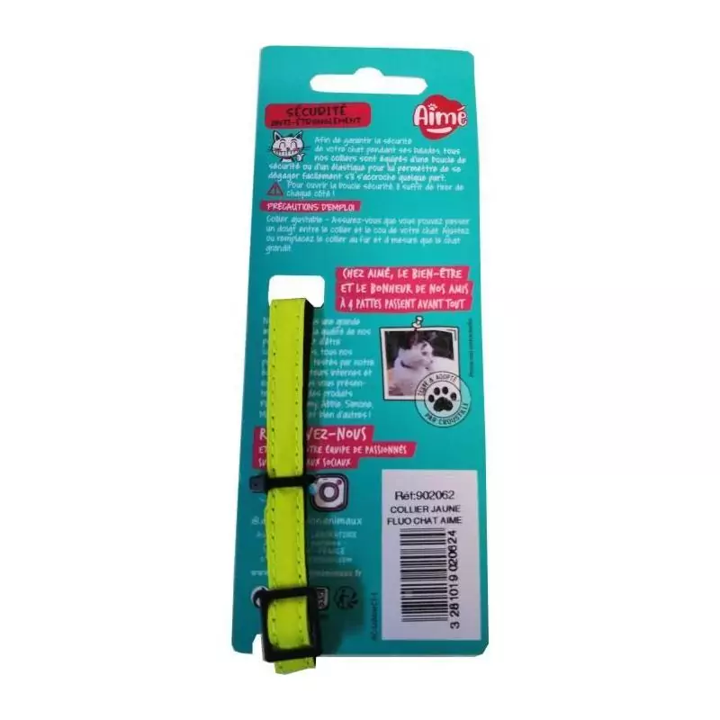 Offrez à votre chat un look unique et original avec ce collier AIME jaune fluo, paillettes dorées et grelot argenté. Il sera fier de le porter lors de ses balades en extérieur et fera des envieux parmi les autres félins du quartier.
