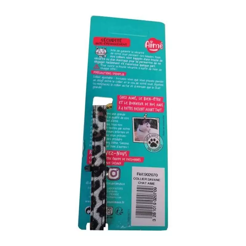 Offrez à votre chat un accessoire unique et original avec le collier AIME Savane. Votre petit félin sera non seulement stylé, mais il pourra aussi exprimer sa personnalité avec ce collier aux motifs exotiques et joyeux.