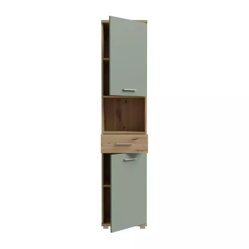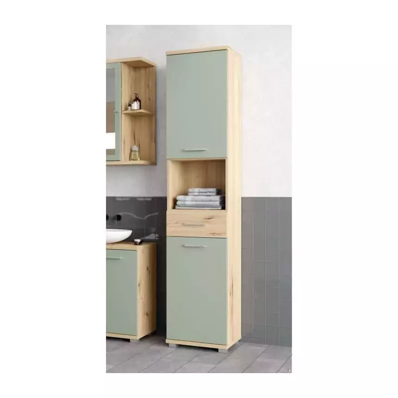 Ajoutez une touche de sophistication à votre salle de bain avec cette colonne en chêne artisan / vert sauge. Pratique, esthétique et durable, elle deviendra rapidement un élément indispensable de votre routine quotidienne. Offrez-vous le luxe d'un rangement bien pensé et d'un design raffiné avec cette superbe colonne de salle de bain.