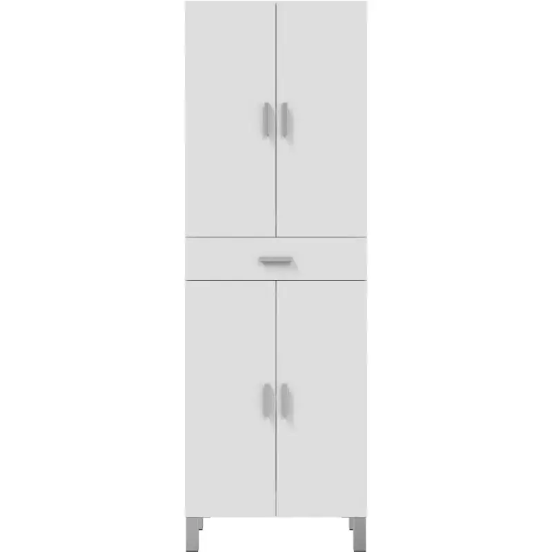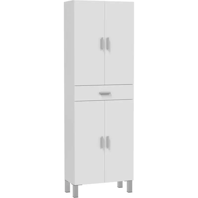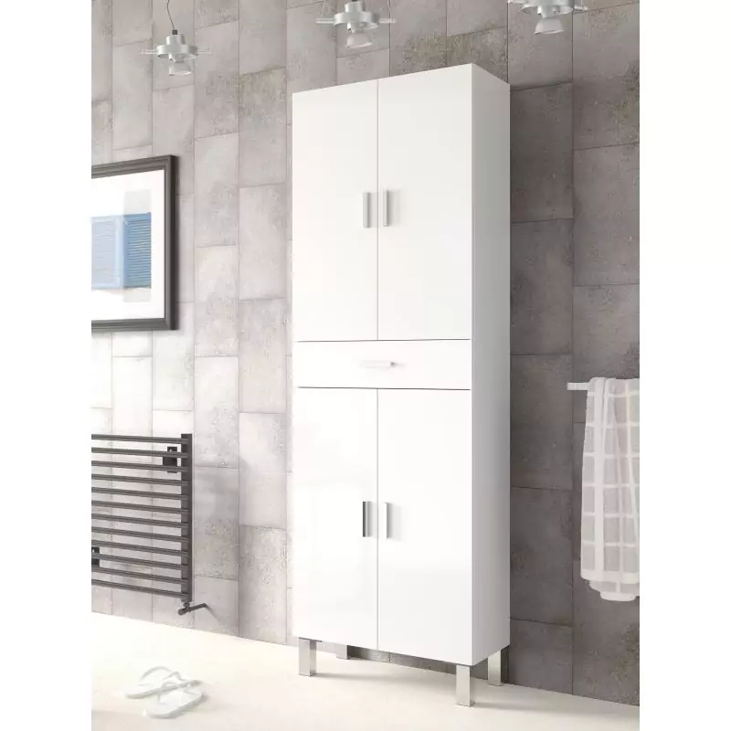 Cette colonne de salle de bain est équipée de 4 portes et 1 tiroir, offrant ainsi un espace de rangement optimal pour vos serviettes, produits de beauté et autres accessoires de salle de bain. Ses dimensions de 60 x 29 x 182 cm en font un meuble compact qui trouvera facilement sa place même dans les petites salles de bain.