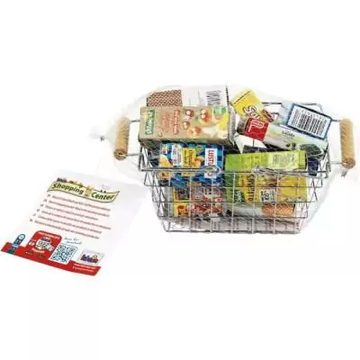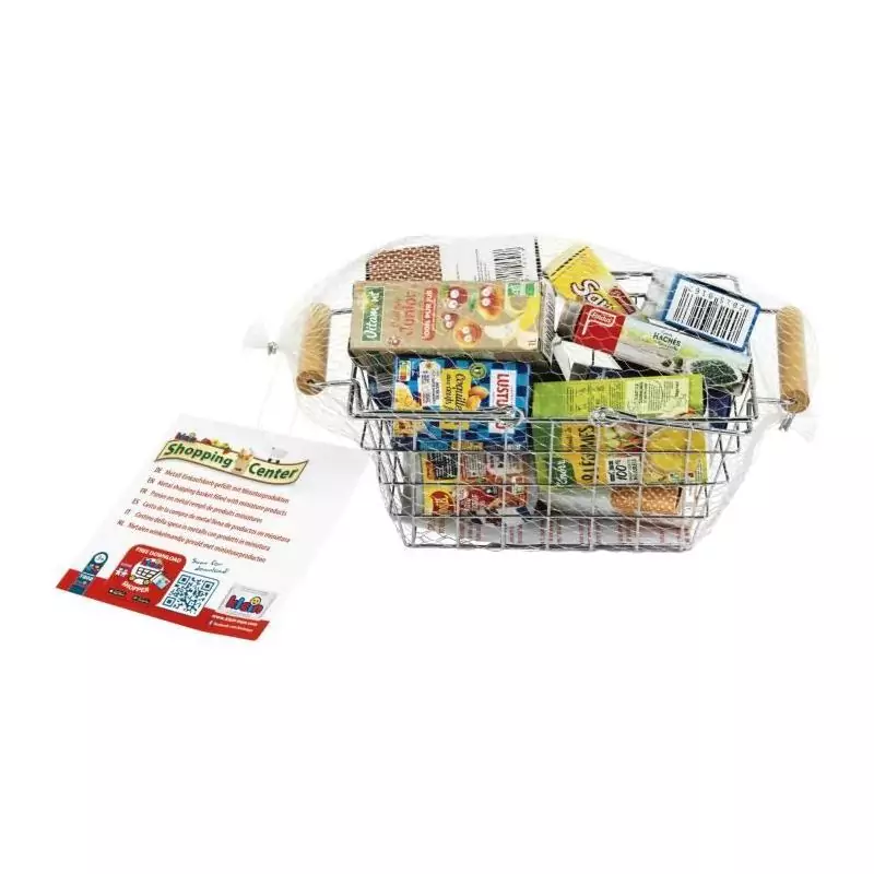 Jouet d'épicerie - KLEIN - Panier a provisions en métal garni de boîtes - Garni de boîtes d'aliments factices.