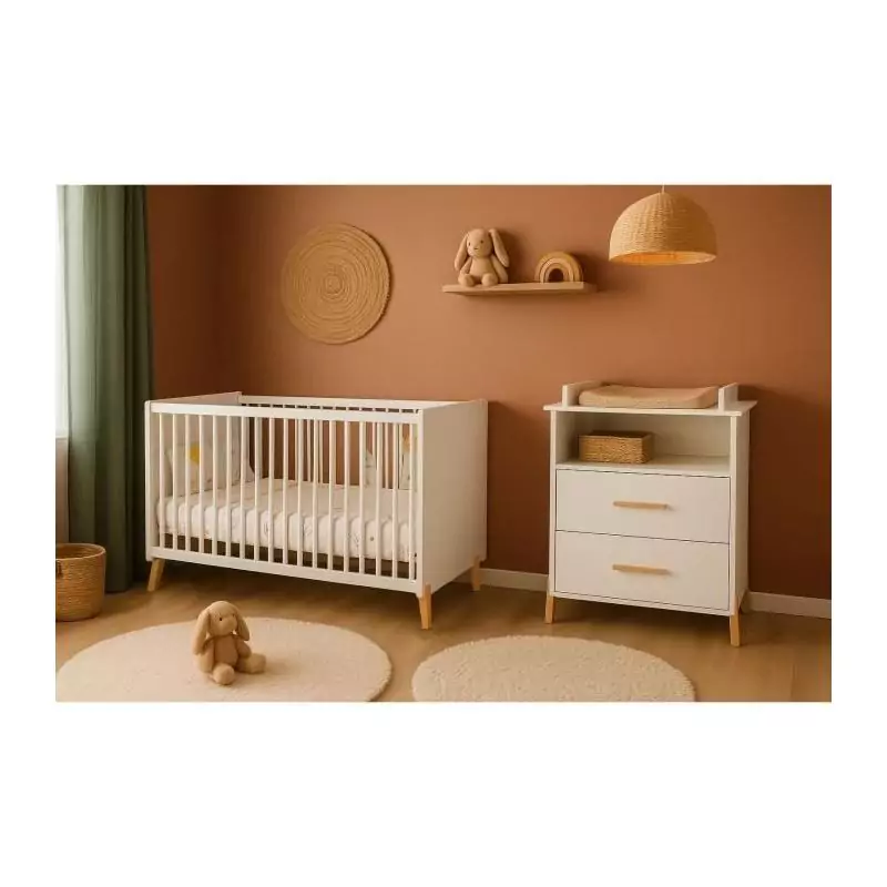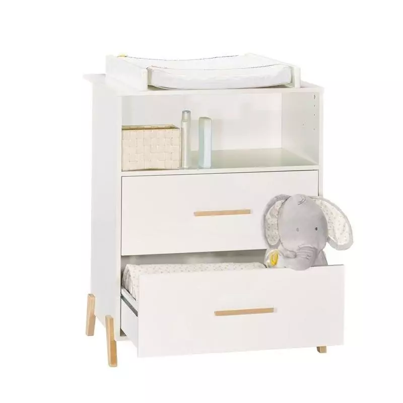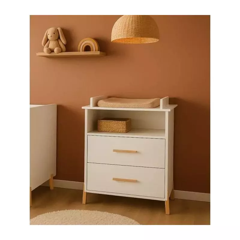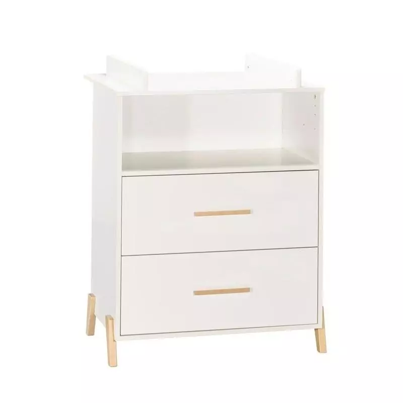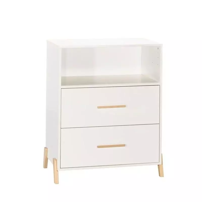 Commode a langer - Babyprice - Joy Naturel - 2 tiroirs - 1 niche - Blanc - Sur pieds en bois naturel