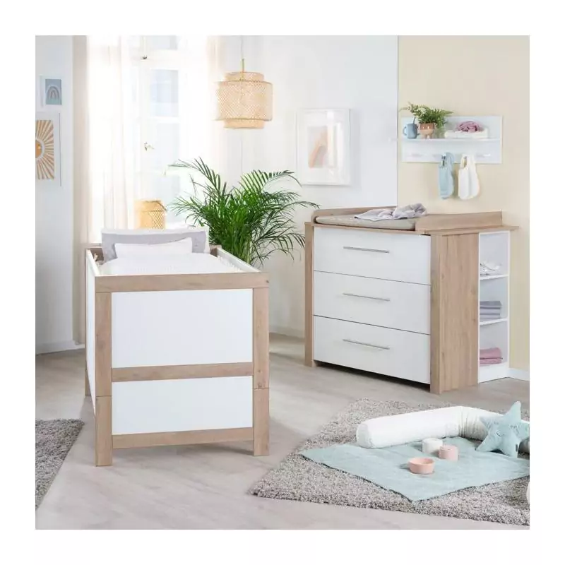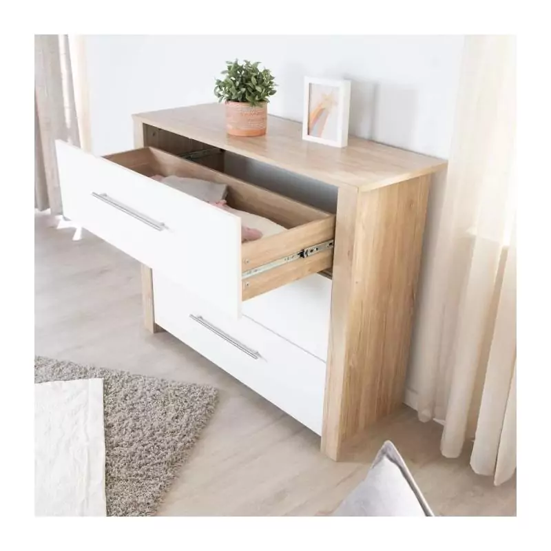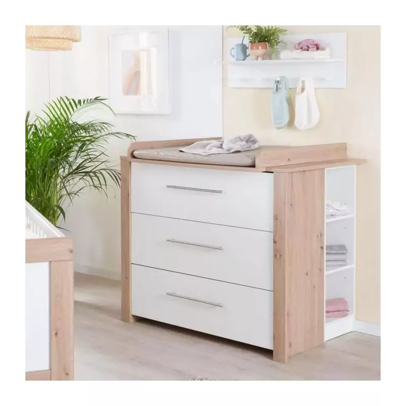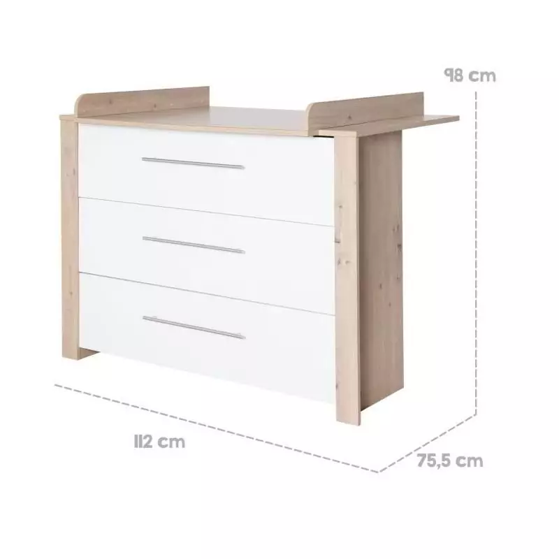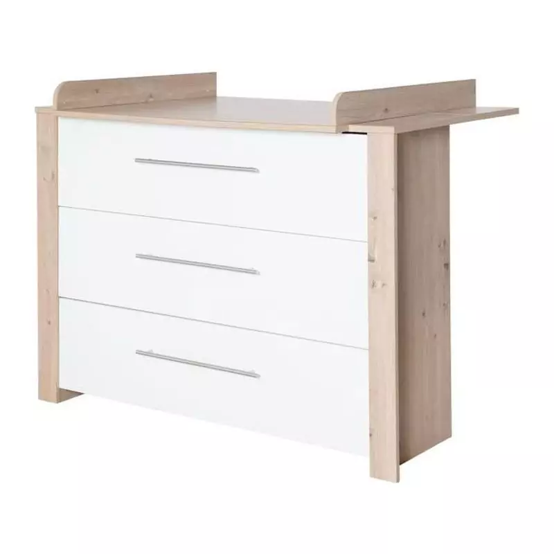 Commode a langer - ROBA - MALO - 3 tiroirs - Chene clair / blanc