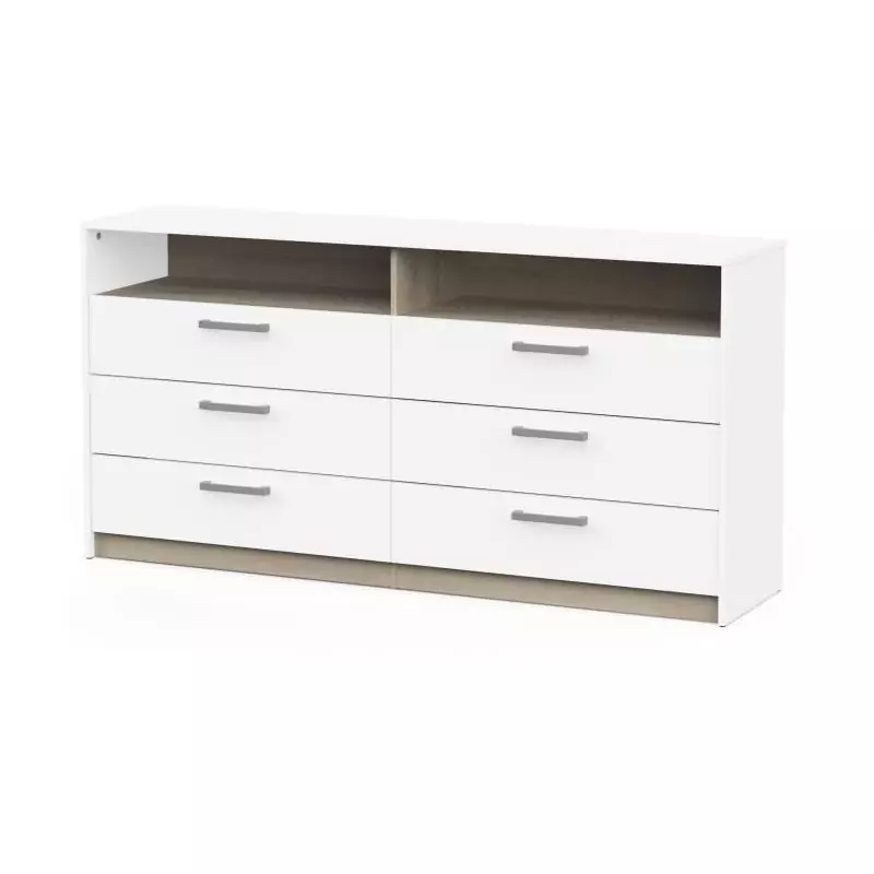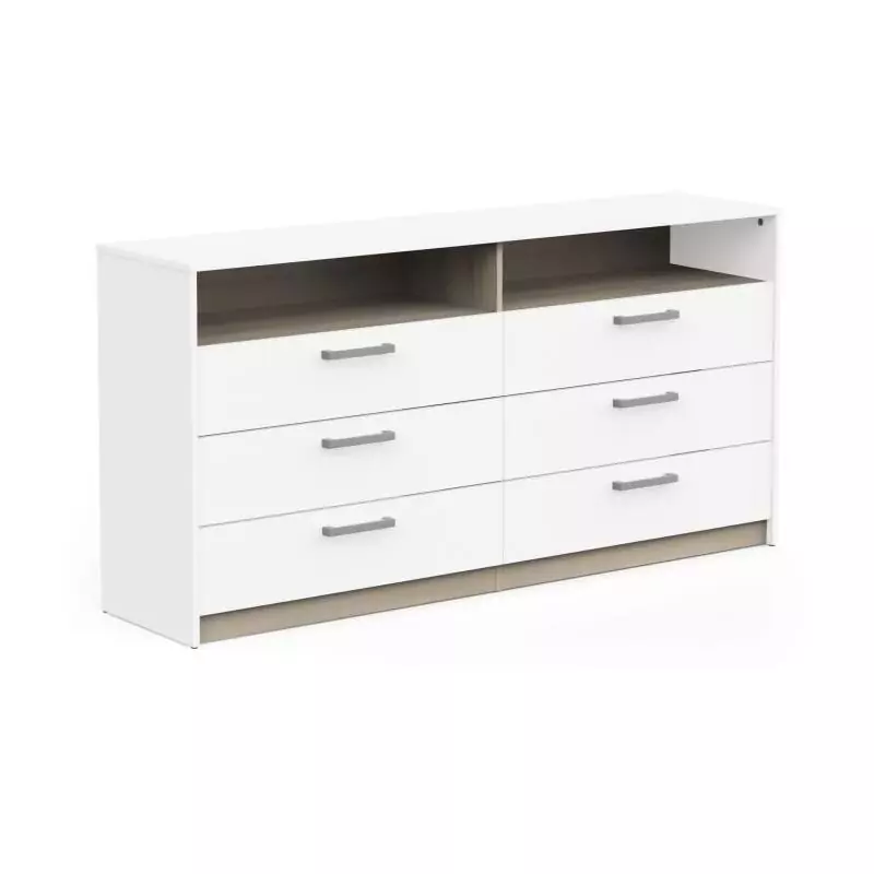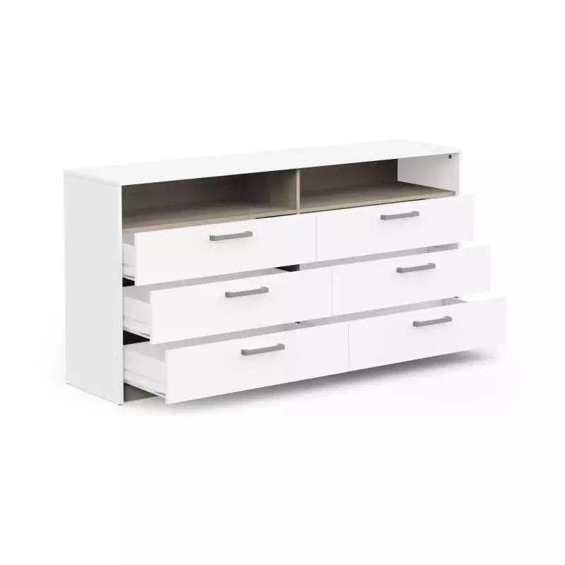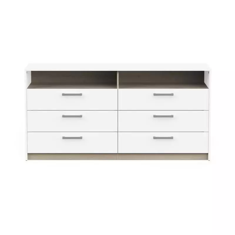Les dimensions de cette commode sont de 162,7 x 39,5 x 81,1 cm, offrant une taille idéale pour s'adapter à divers espaces. Sa finition en Blanc mat lui confère un aspect moderne et épuré, s'intégrant facilement à tous les styles de décoration.