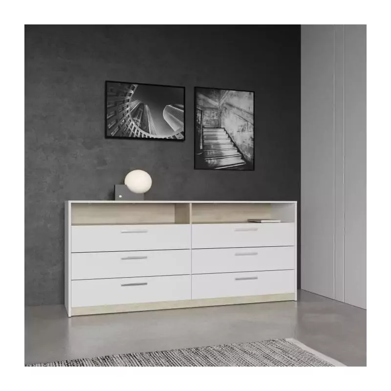 La Commode WATSON est une pièce de choix pour votre chambre à coucher, alliant élégance et praticité. Avec ses 6 tiroirs, vous disposez d'un espace de rangement spacieux pour vos vêtements, accessoires et autres objets personnels. Fabriquée en Chêne Kronberg de haute qualité, elle apporte une touche naturelle et chaleureuse à votre intérieur.