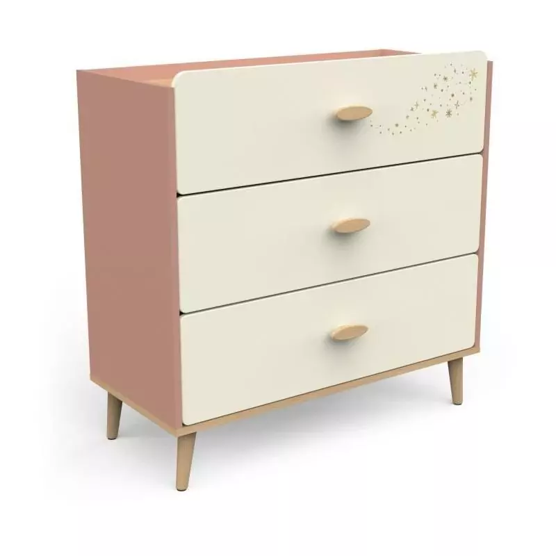 Commode SUZIE - 3 tiroirs - Couleur Chene et Abricot - L86,9 x P39,6 x H88,5 cm - DEMEYERE