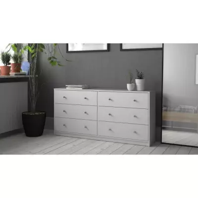 Optez pour la Commode OREGON 2x 3 tiroirs - Décor blanc - L 143 x P 30 x H 68 cm pour allier praticité, style et qualité dans votre chambre à coucher.