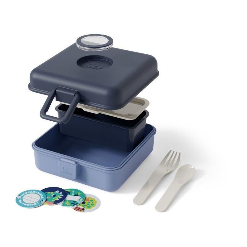Boite a Sandwich Enfant - MONBENTO - Couverts inclus - Sans BPA - Snacky Bleu Infinity