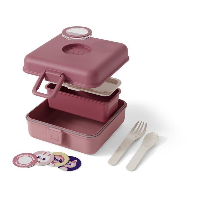 Boite a Sandwich Enfant - MONBENTO - Couverts inclus - Sans BPA - Snacky Rose Blush